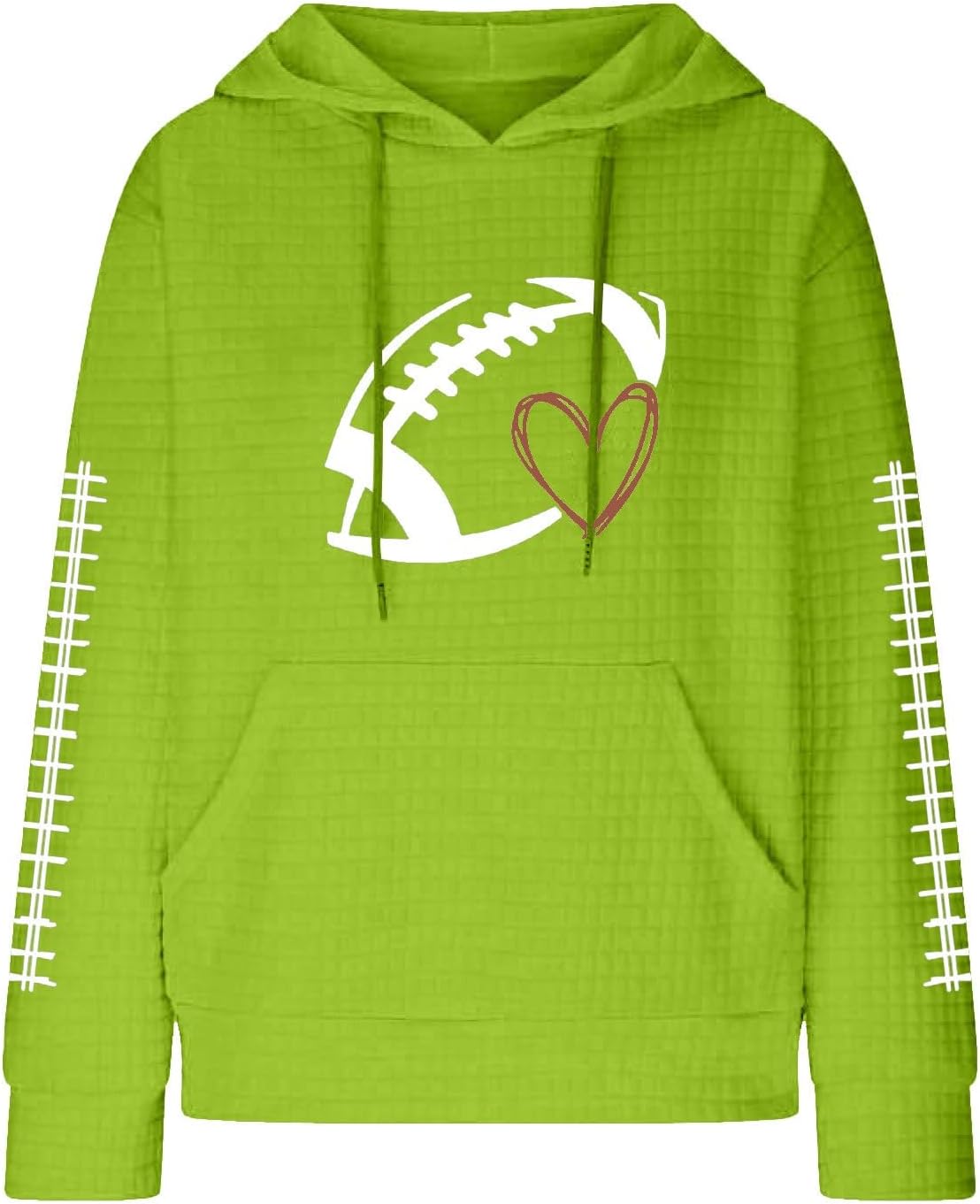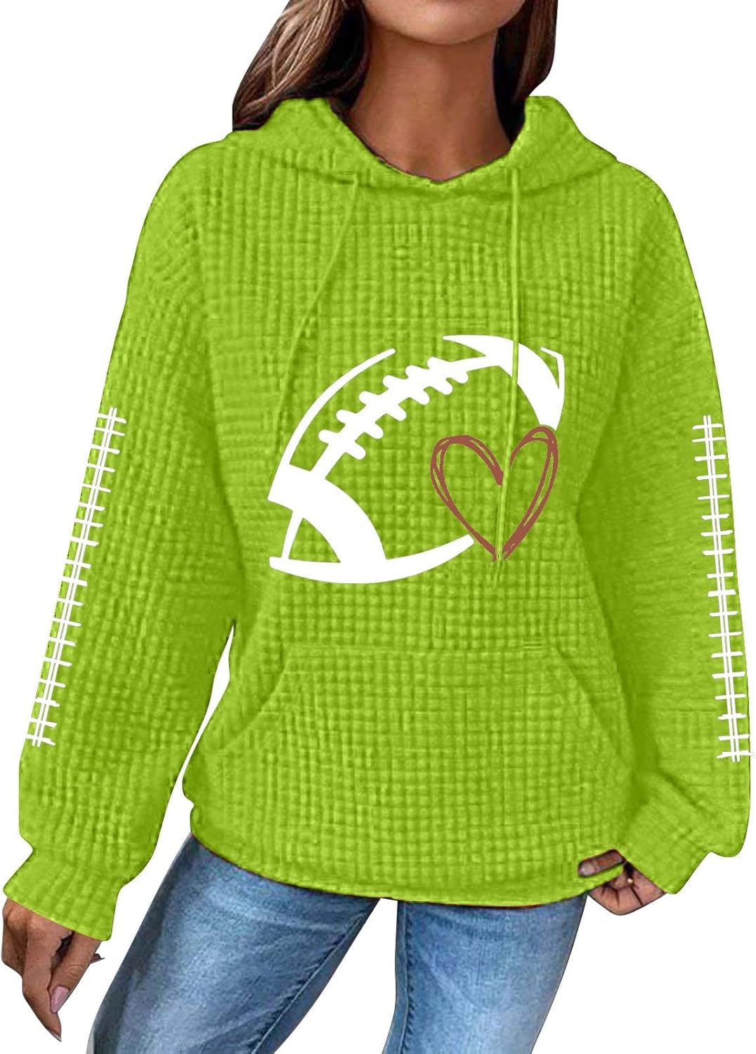Football Sweatshirts for Women Pullover Long Sleeve Game Day Graphic Waffle Hoodies Casual Drawstring Tops with Pocket