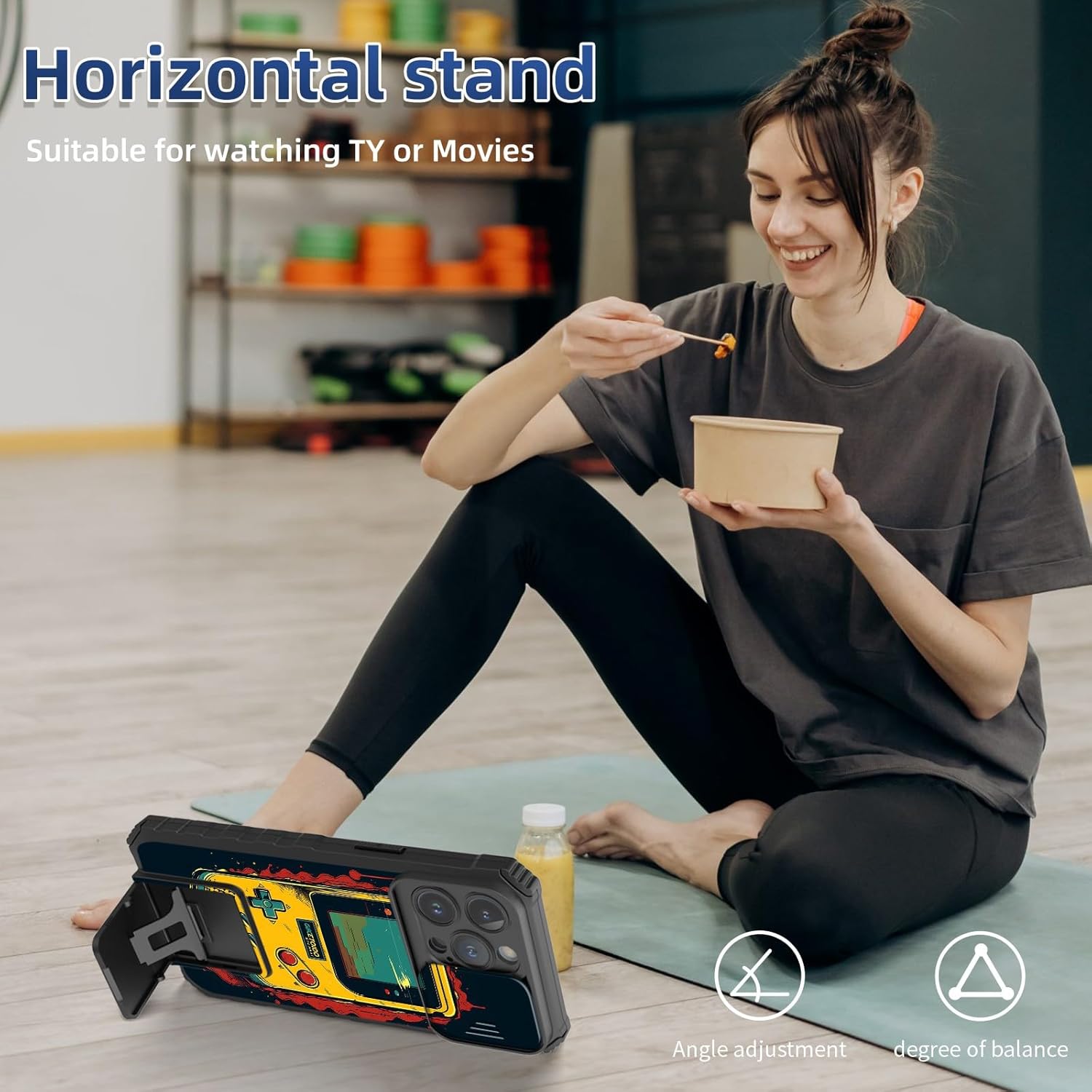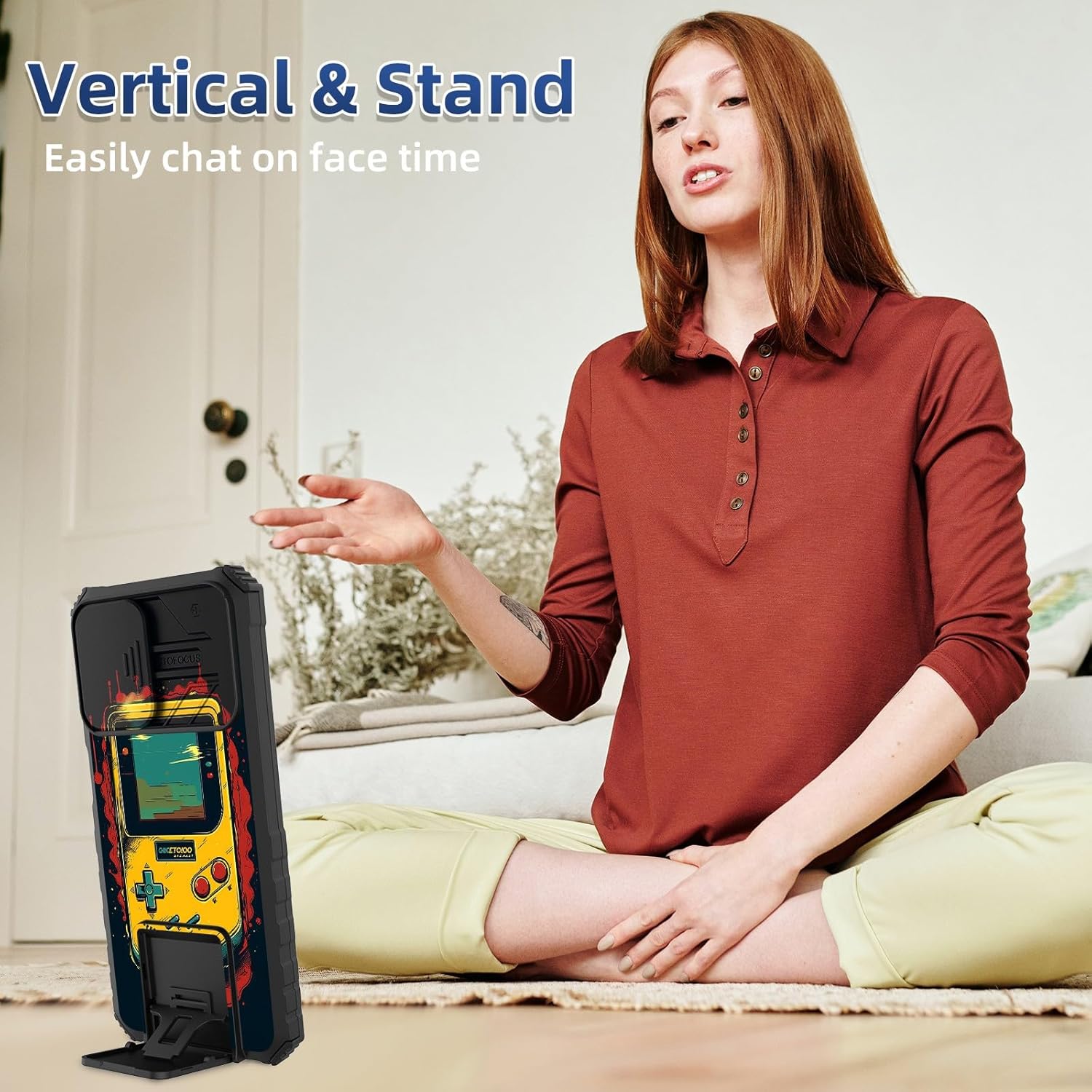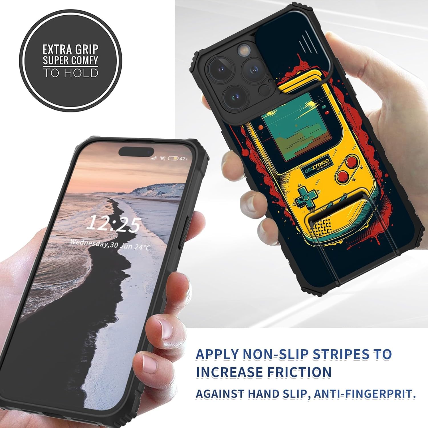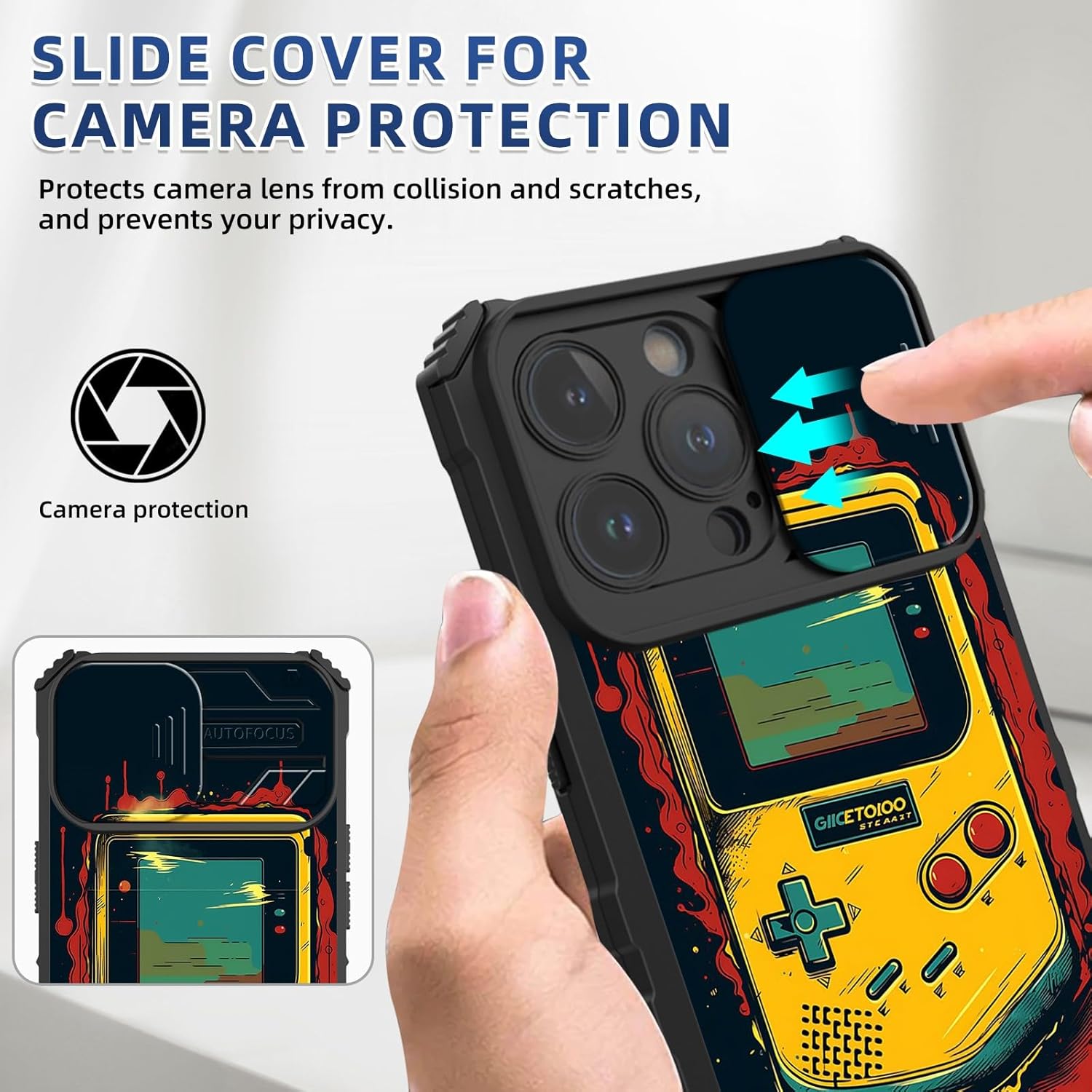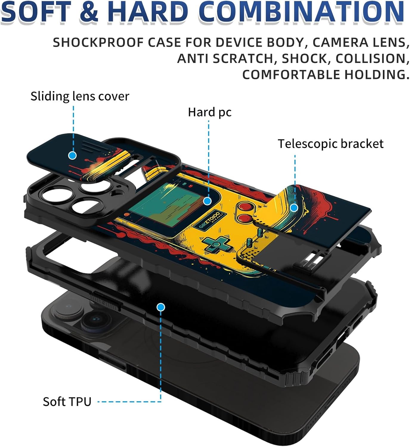 GFRGTFHYT for iPhone 16 Pro phone case with slide camera cover not only can provide your smartphone full-body protection, but also offer you a great convenience in your life with its built-in kickstand, which is a good choice for your smartphone