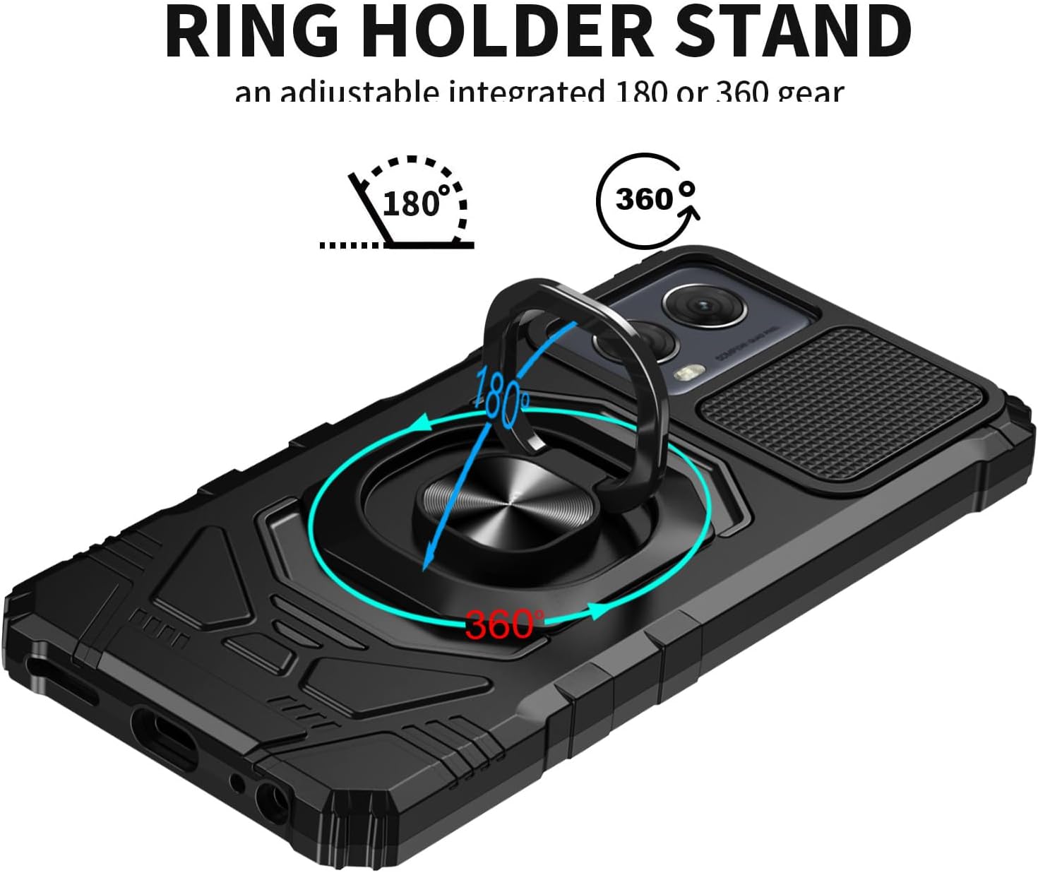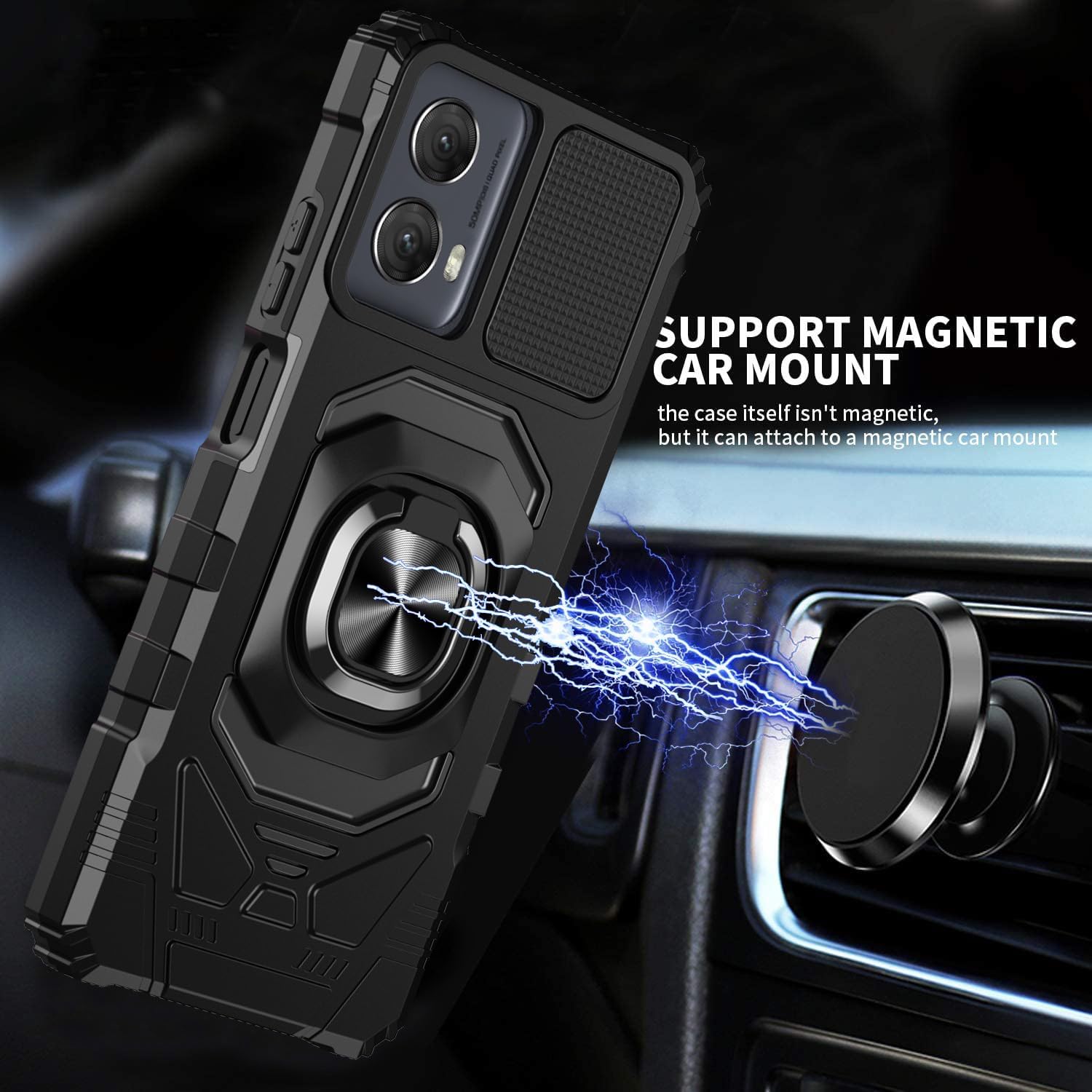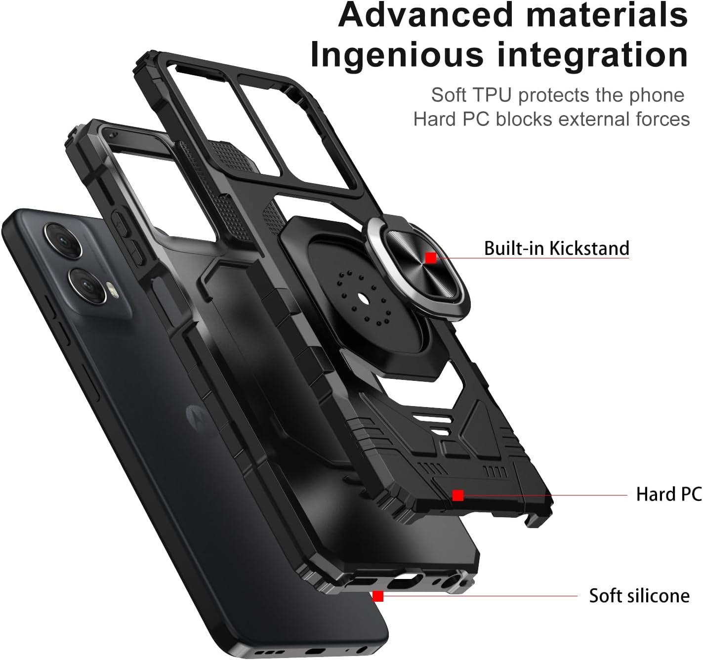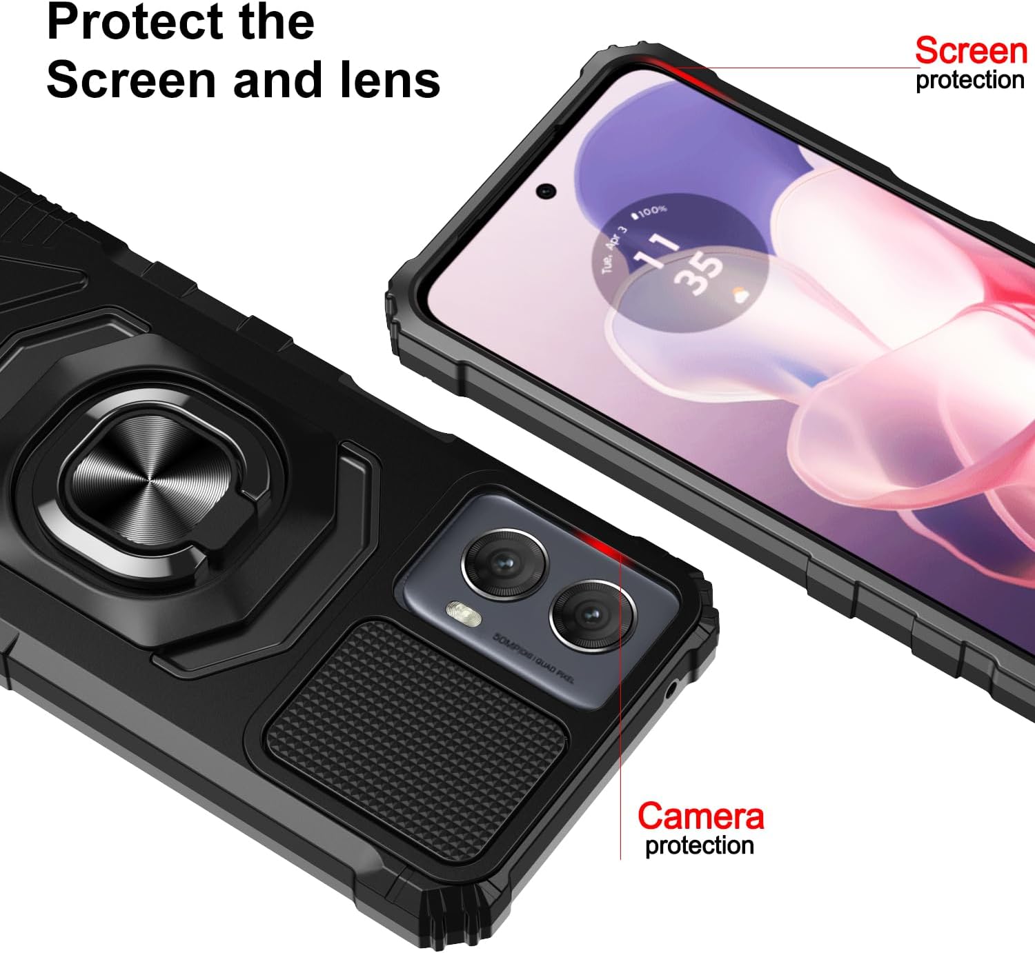 【360° Rotating Kickstand Ring】Equipped with premium metal ring kickstand, designed for Motorola Moto G Play (2024) case with screen protector offers multiple adjustable angles (360-degree horizontal and 180-degree vertical). Built in kickstand holds your phone at optimal viewing angles for movies & videos and ase hands when watching films, playing games or online chatting.
