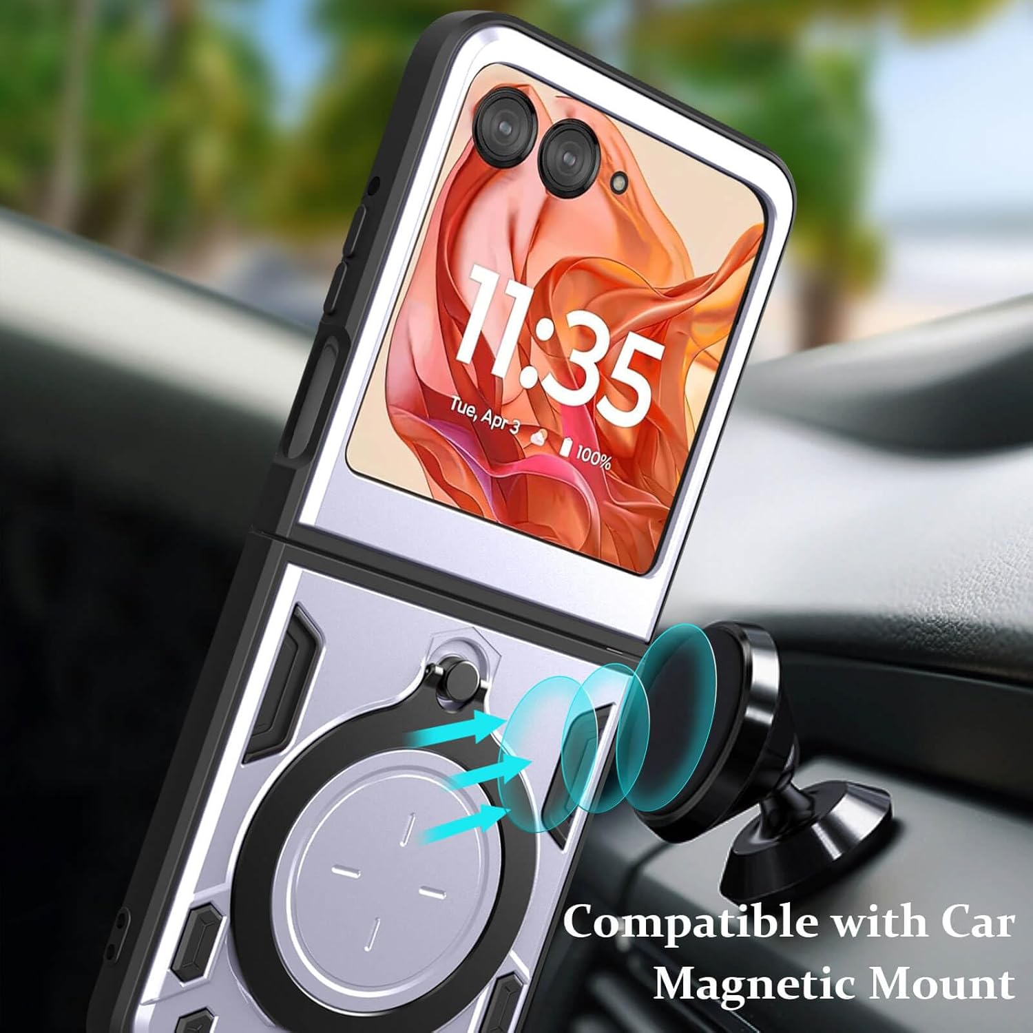 For Motorola Razr 2024 Phone Case Compatible with Magnetic Car Mount: Razr 2024 5G Case Built-in metal magnetic sheet for stable adsorption, which can be directly adsorbed to the magnetic car mount holder.very convenient during driving time for navigation.You will like how convenient it is with such powerful functions.(Not includes the magnetic car mount holder) [NOT Compatible Wireless Charging]