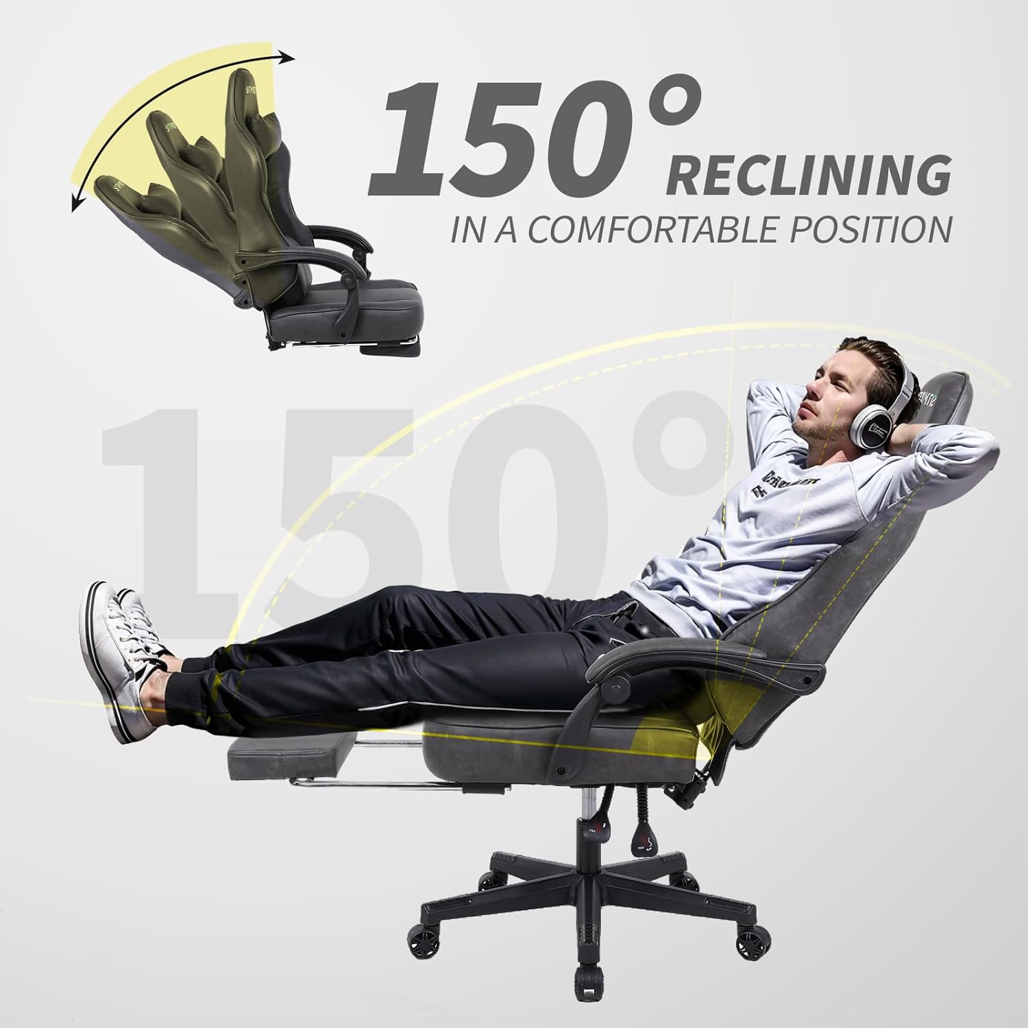 Elevate Your Comfort——Feeling tired from sitting too long? Choose a racing style gaming chair with a footrest to relax your feet. Simply extend the footrest, lean back in your adjustable gaming chair, and enjoy your favorite music in comfort. This high-quality PU leather computer gaming chair is easy to clean—just wipe with a soft cloth to keep it looking like new