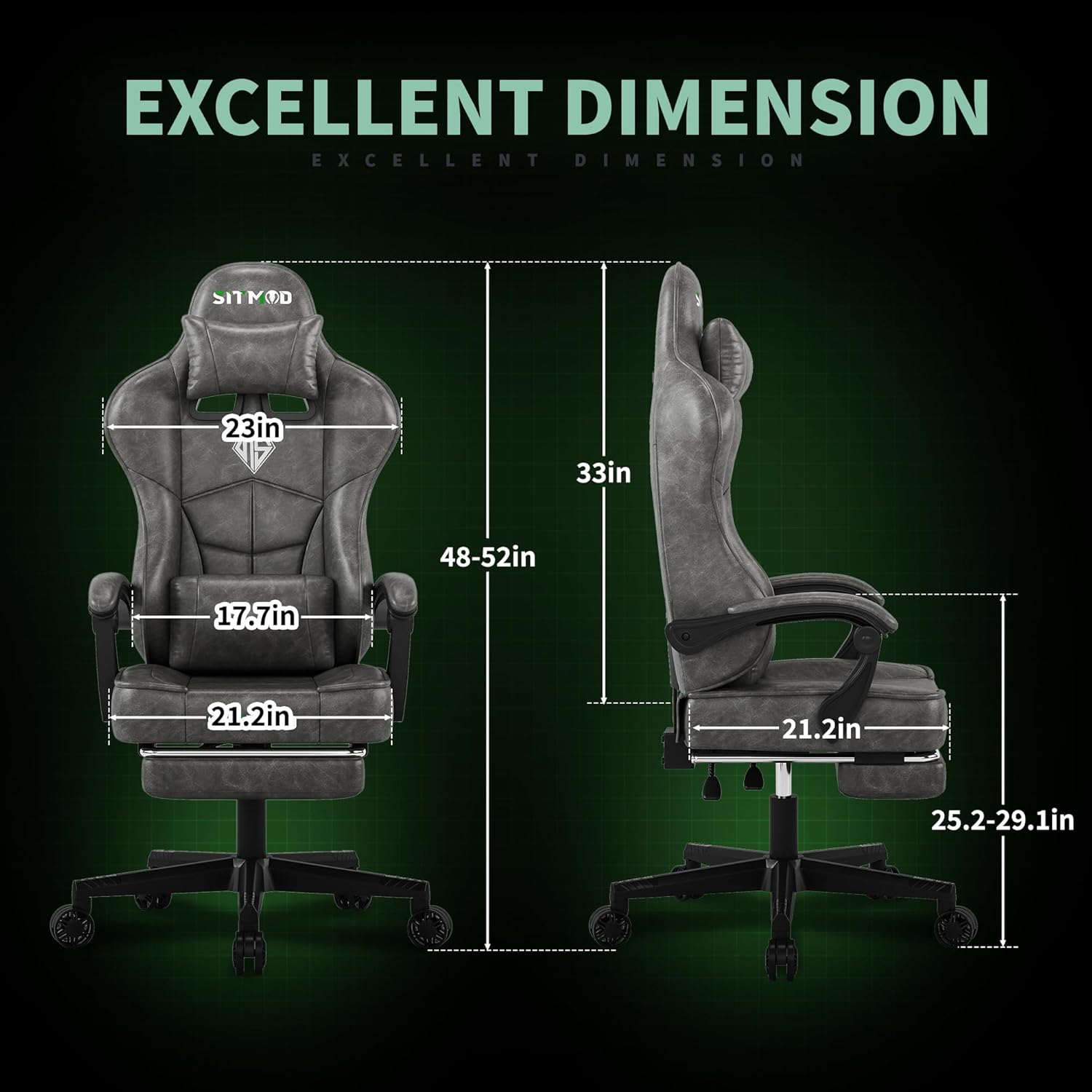 SITMOD Gaming Chair ——Ultimate Comfort for Gamers Experience superior comfort with the SITMOD Gamer Chair, an ergonomic PC gaming chair designed with an extra-wide seat and backrest, perfect for adults. Dimensions: Backrest – 33 inches, Seat – 21.2 inches, Adjustable Height – 3.9 inches. The ergonomic, high-back design provides natural lumbar support, aligning with your shoulders, head, and neck, making it the ideal ergonomic gaming chair for an immersive gaming experience tailored to your needs