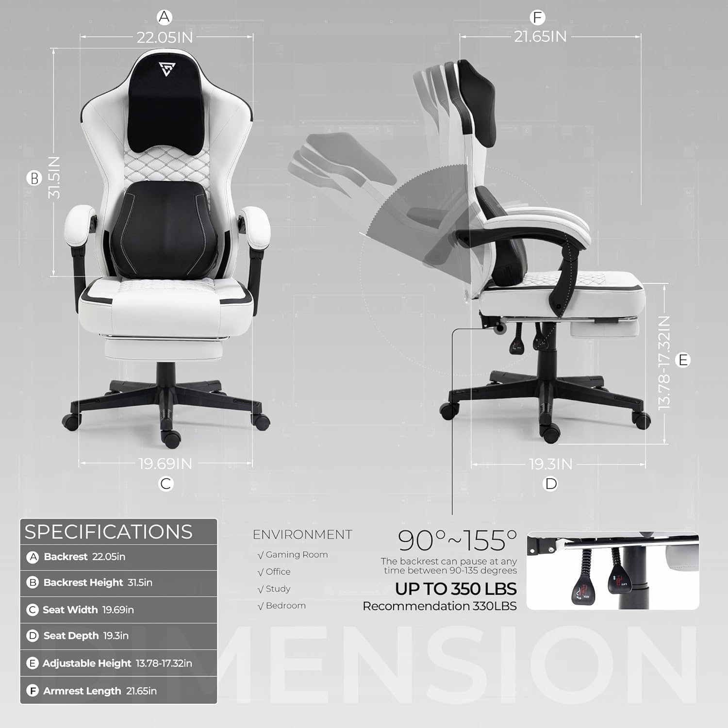 【Quality Both Guaranteed】This chair gaming uses a steel frame structure, which is stronger and more stable, can withstand 350lbs weight and 90kg impact. BIFMA certified explosion-proof base and gas cylinder guarantee the safety of the video game chair. Moreover, we also provide a detailed operation manual so that you can install the computer chair in a short time; 1-year warranty is no problem; the customer service team is also on standby to respond to any questions you may have.