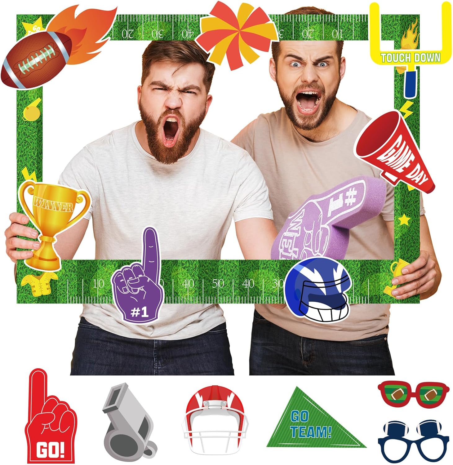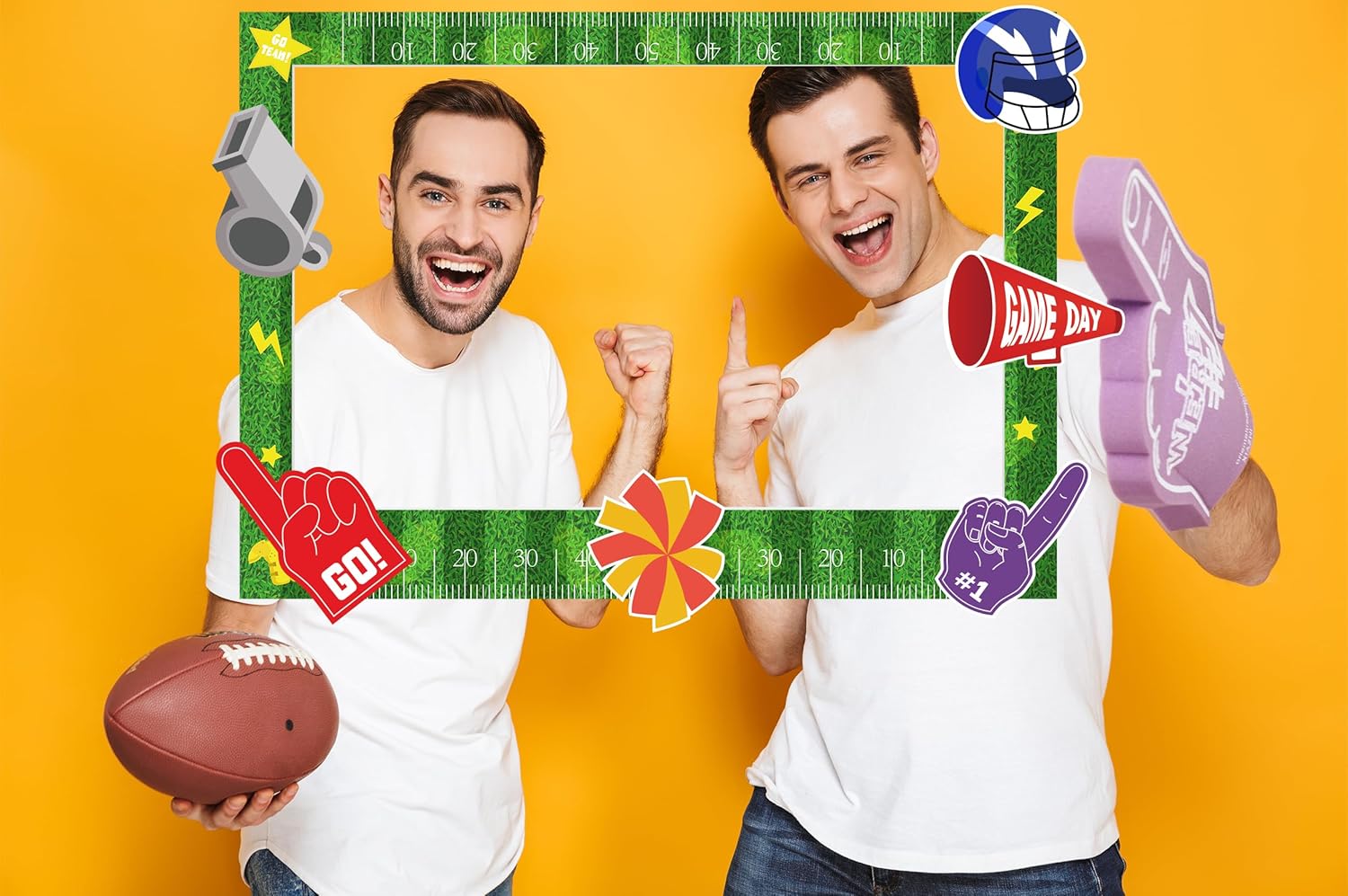 Package:1 super football bowl photo frame,13 football game photo booth props,20pcs dot stickers and 8pcs 3M stickers