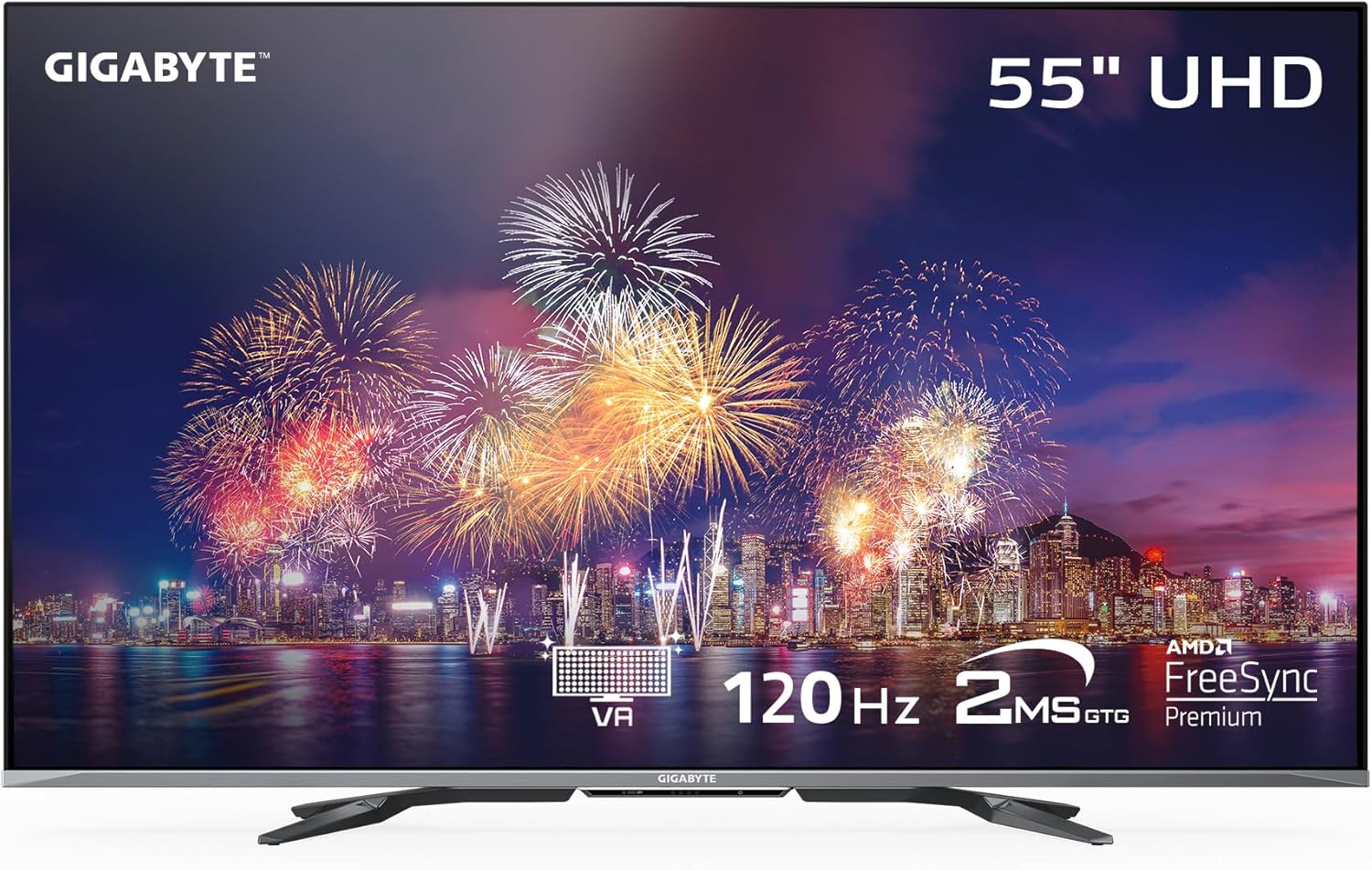 The GIGABYTE S55U is a 54.6 inch display with UHD resolution and equipped with the latest HDMI 2.1 at 120Hz refresh rate for the most fluid gaming experience and awesome picture quality. The 10-bit color and wide color gamut of 96% DCI-P3 offers outstanding color accuracy and consistecy. Built-in streaming services provide numerous movies and tv shows and it’s also customizable to download your desirable applications from the Android system. No matter if it’s for gaming or any other form of entertainment, the S55U can do it all!