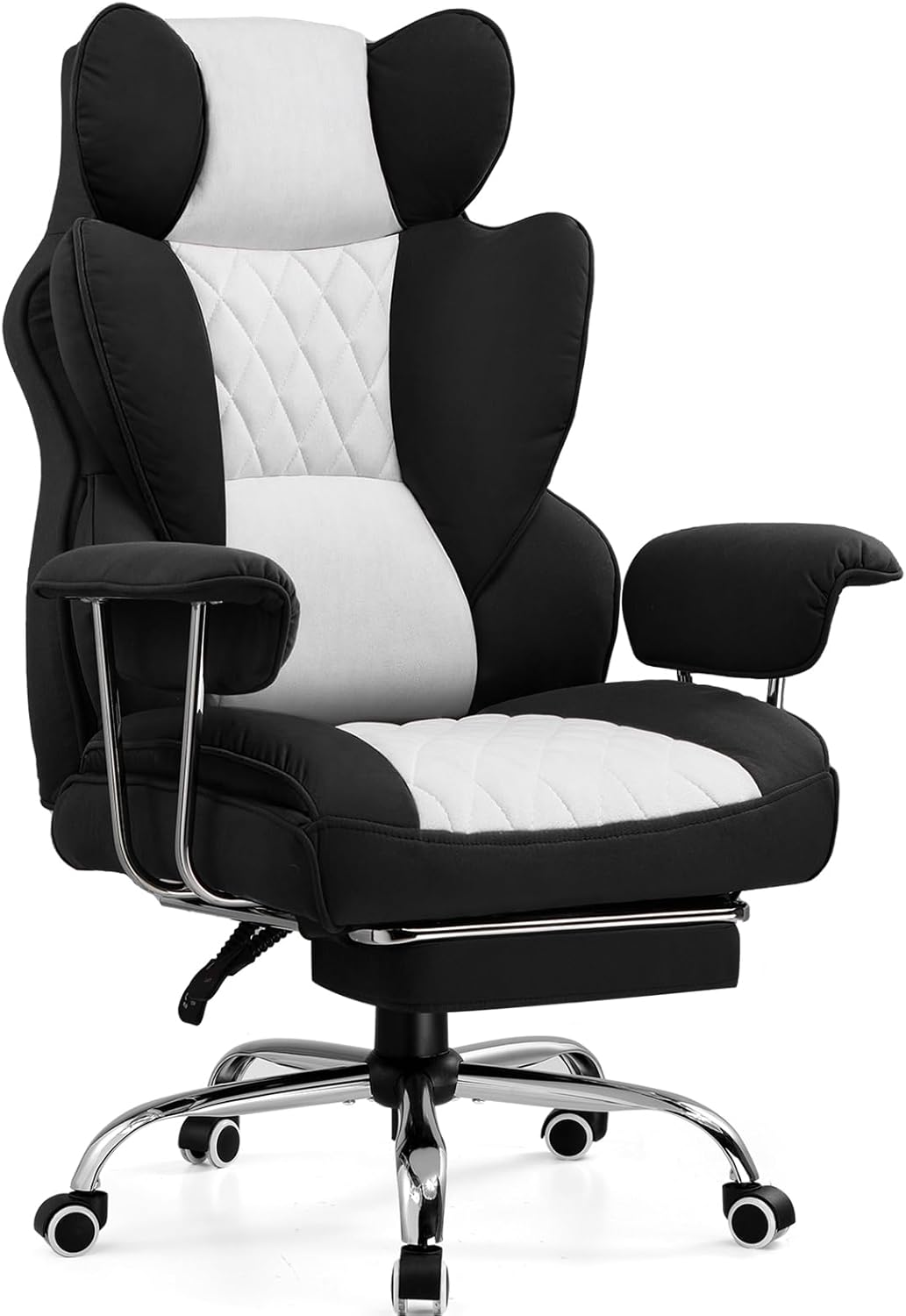 【Sofa-like Seat】 The executive chair features a pocket spring lumbar support for elasticity and heat dissipation during prolonged sitting. The widened seat, free of restricting side wings, along with an adjustable footrest, allows comfortable seating in any position. It’s as casual and free as sitting on your own sofa