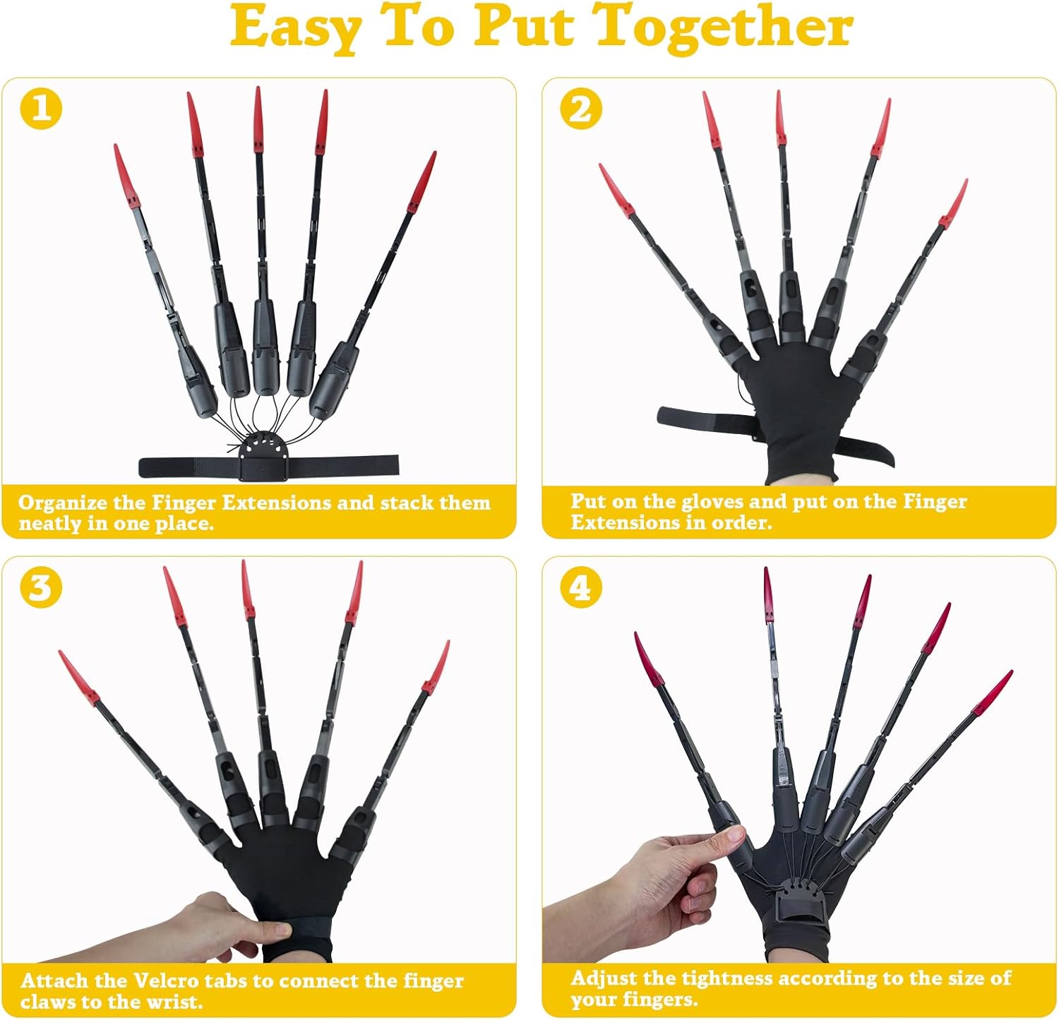 Flexible and Adjustable – This latest 3D claw hands Equipment adopts the latest gear design and very flexible auxiliary accessories.Fits all finger sizes, It is easy to wear, flexible in action, close to a real finger, and full of horror.
