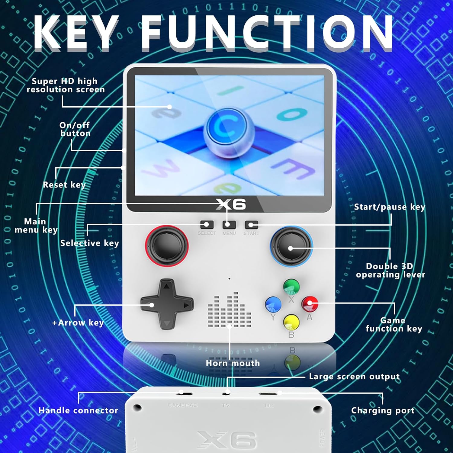 【Dual 3D Rocker Design】 This retro game console rocker features a semi-curved protrusion that fits the big mother finger better and is non-slip. You can choose the corresponding operation mode according to different games. The L R key design on the back allows you to release your vigor.If you meet any problems during the use of handheld game machine, please contact us in time, we will make a good solution for you