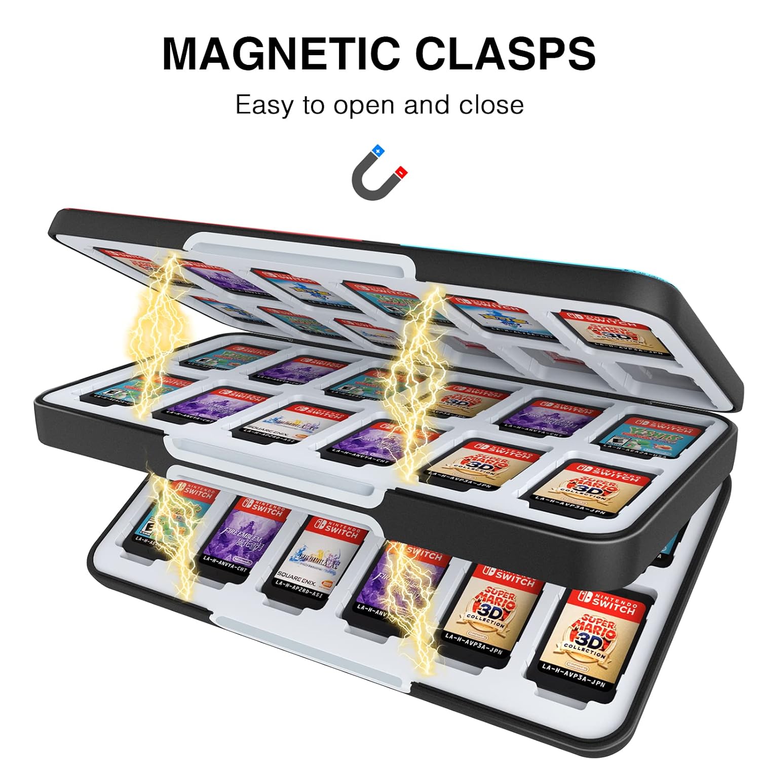 SUFFICIENT CAPACITY:This compact storage case holds up to 48 game cards and 24 micro SD cards for nintendo switch game card.