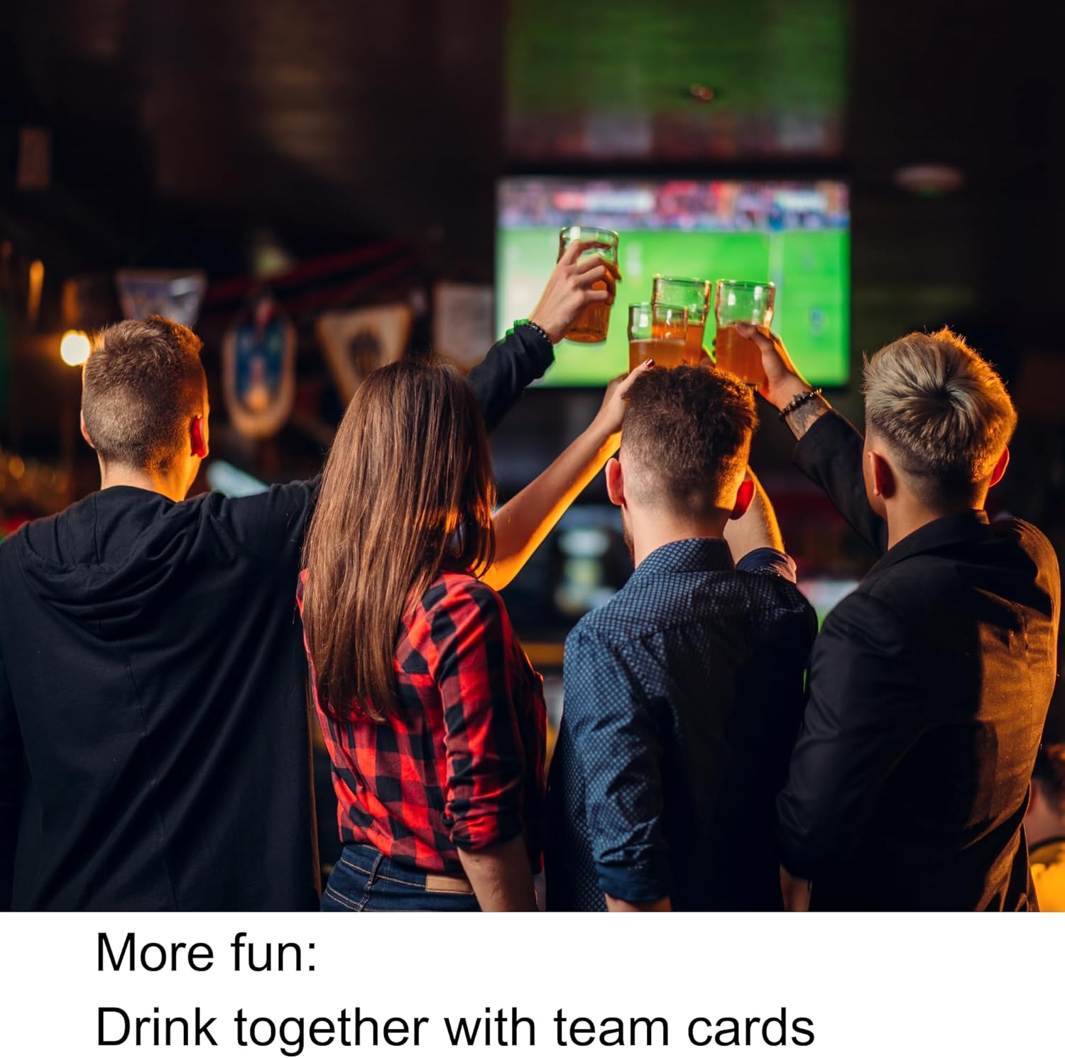 1/ Team cards: pick 3 cards. Everyone takes a sip together when the event occurs. Take new cards each quarter.