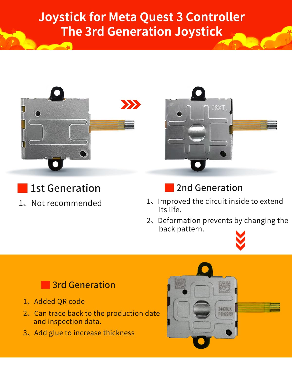 【Third-Generation Joystick Upgrade】Experience superior durability and performance with our latest oculus quest 3 controller third-generation joysticks. Enhanced internal spring, increased groove count, and highly conductive cable make installation easier and boost overall reliability. Say goodbye to frequent replacements and high costs.