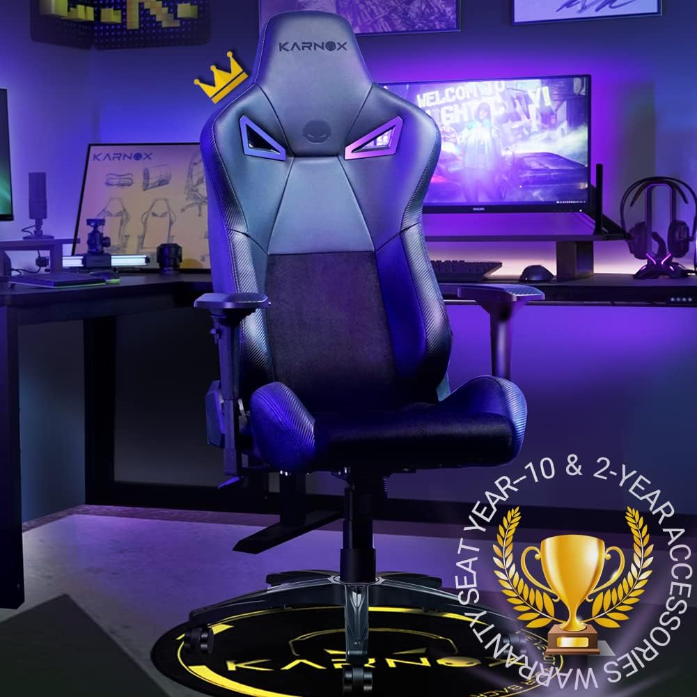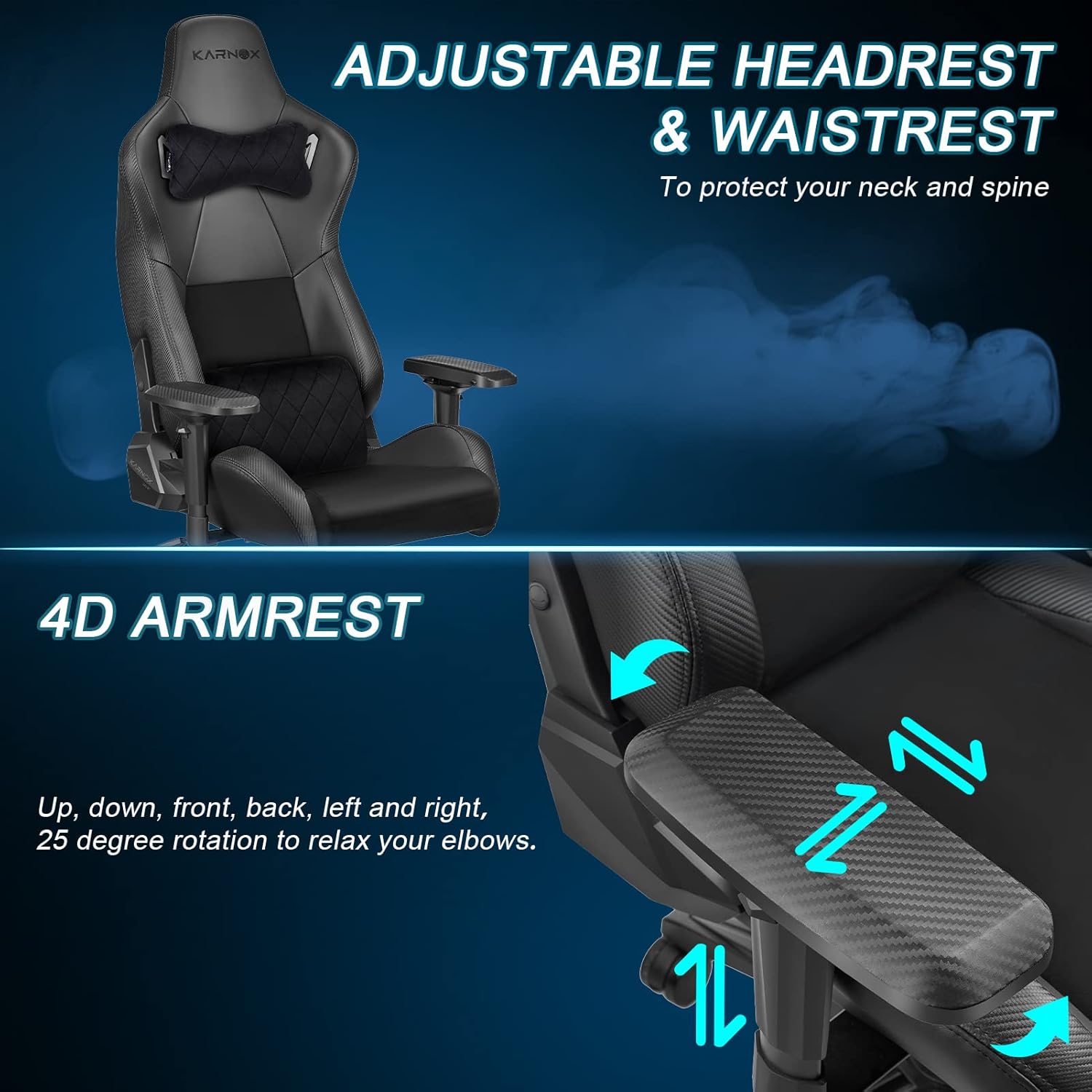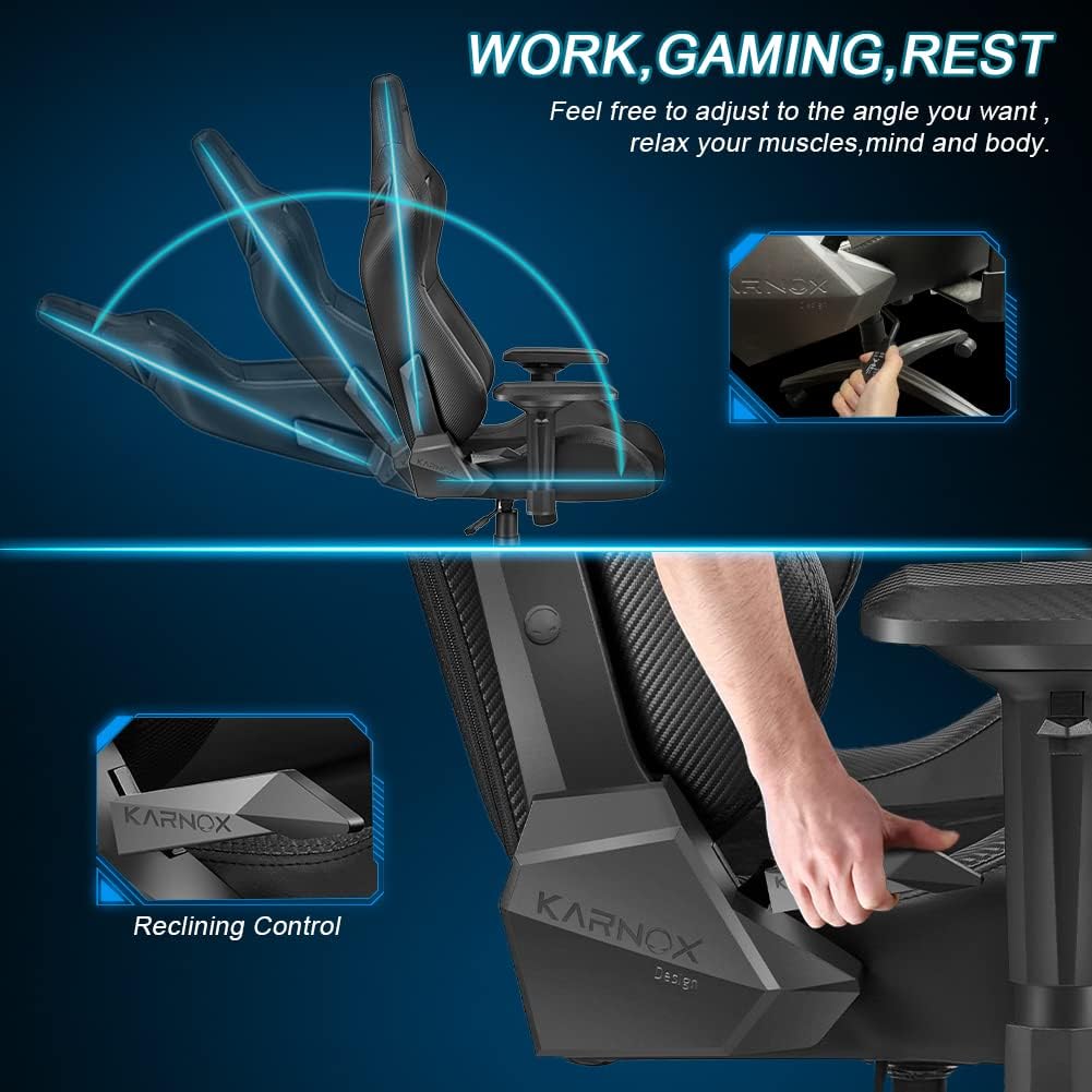 [Skin-Friendly Gaming Chair]:Karnox Gaming Chair is made of high-quality PU leather for racing chairs, which is easy to clean, comfortable and won’t peel easily, and the cushion is made of integrated high-density foam, it is very suitable for sedentary and won’t collapse for ten years, so that you can release the pressure from the tired state, relieve fatigue, enjoy games,work or life.