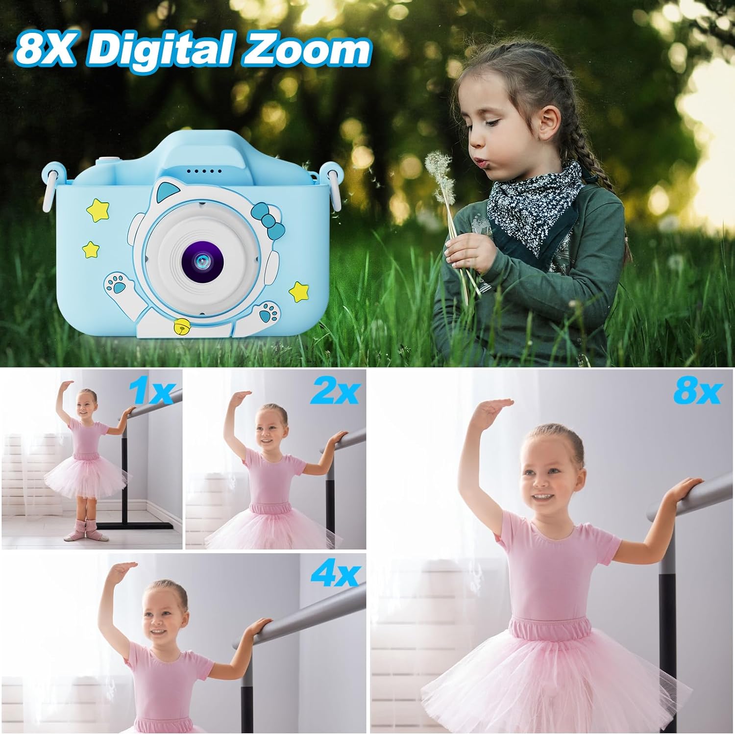 📸【Digital Camera for Kids】 Kids cameras as perfect birthday, festival, Christmas gifts for boys and girls aged 3~10. Children love taking photos with extremely cute cameras. Simply capture scenes or animals in nature with family, and experience the fun of nature. The first step to develop kids as a talented photographer.