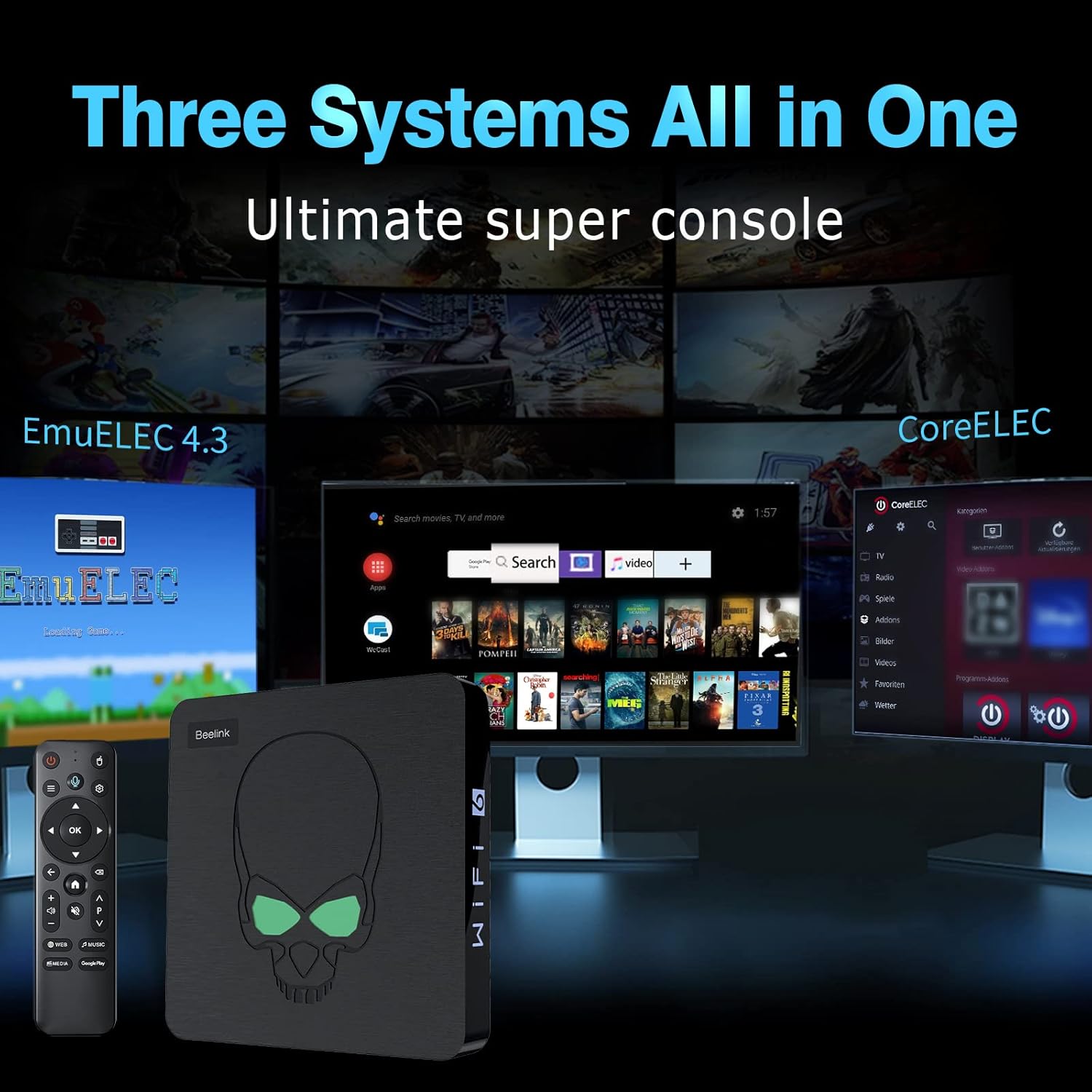 【3 Systems All in 1】: Super Console X King adopts updated Android 9.0, EmuELEC 4.5, and CoreE systems 3 in 1, compatibility with the vast majority of software, games, and applications, to meet the needs of different users.