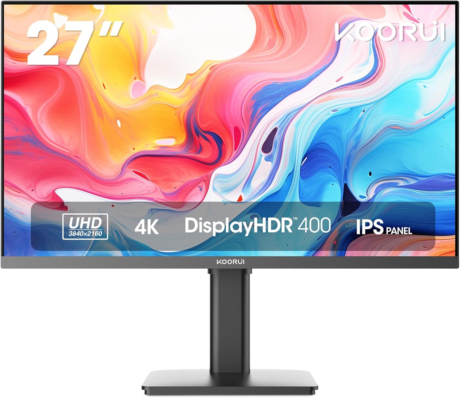 Multiple Ports: The KOORUI 27 inch monitor 4k has HDMI / USB-C/ DP ports and sound interfaces. You can use the 4k pc monitor to connect to your computer or laptop to meet your multiple needs.