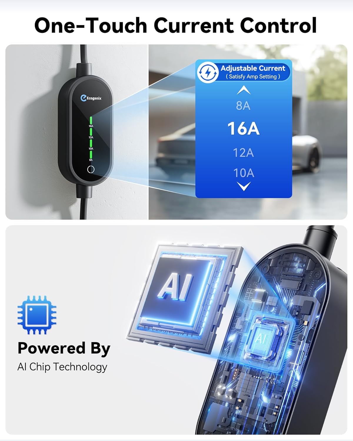 2024 Upgrade – Adjustable Current for Flexibility: Most Tesla chargers cap at 16A, limiting your options. Ecogenix gives you full control with adjustable charging settings (8A, 10A, 12A, 16A). Whether you’re using the NEMA 6-20 plug for Level 2 charging (240V) or the NEMA 5-15 plug for Level 1 charging (110V), This flexibility ensures that whether you want to minimize your energy costs during off-peak hours or want to recharge more quickly during peak usage, our chargers can meet your needs.