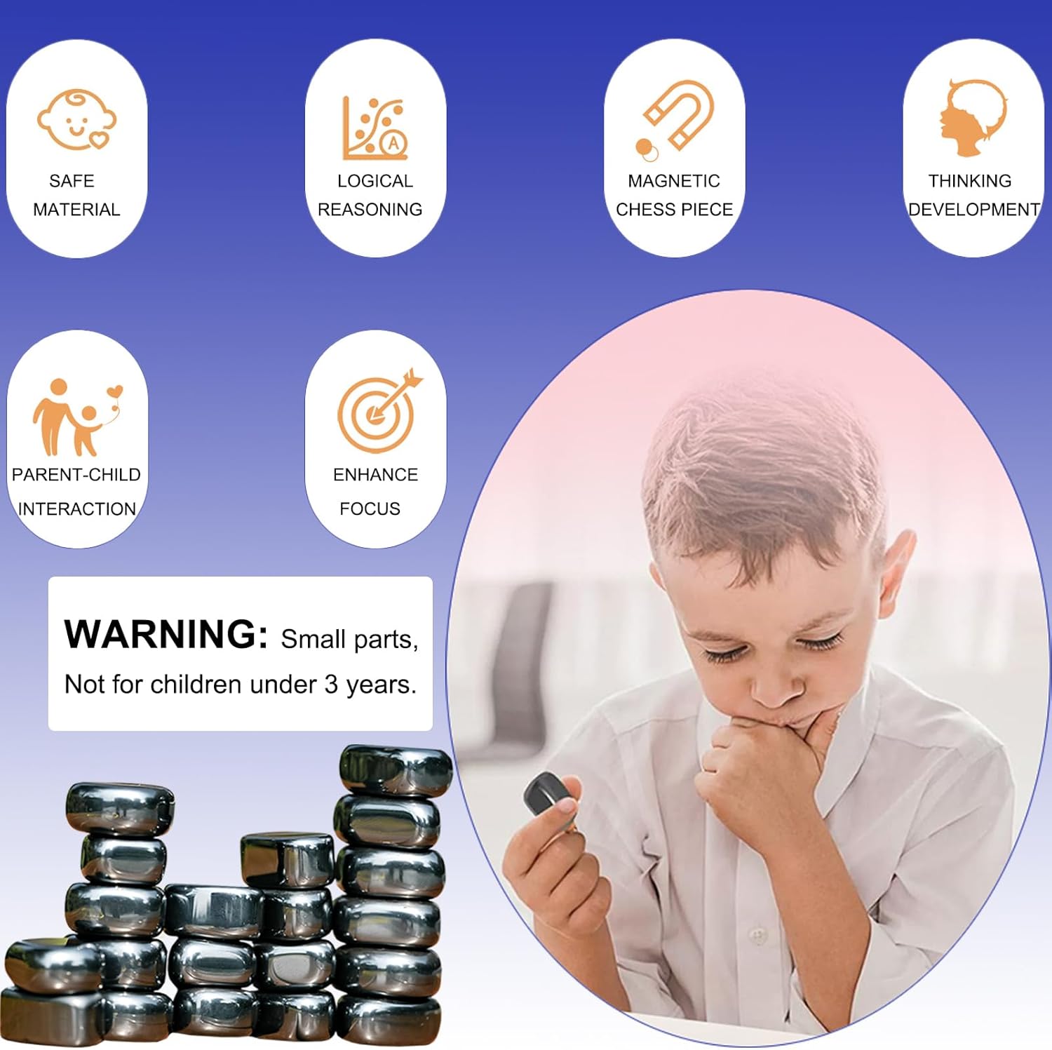 Magnetic Effect Chess Board Game:This magnetic chess set is made of materials for long-term use. WARNING: Small parts, not for children under 3 years.