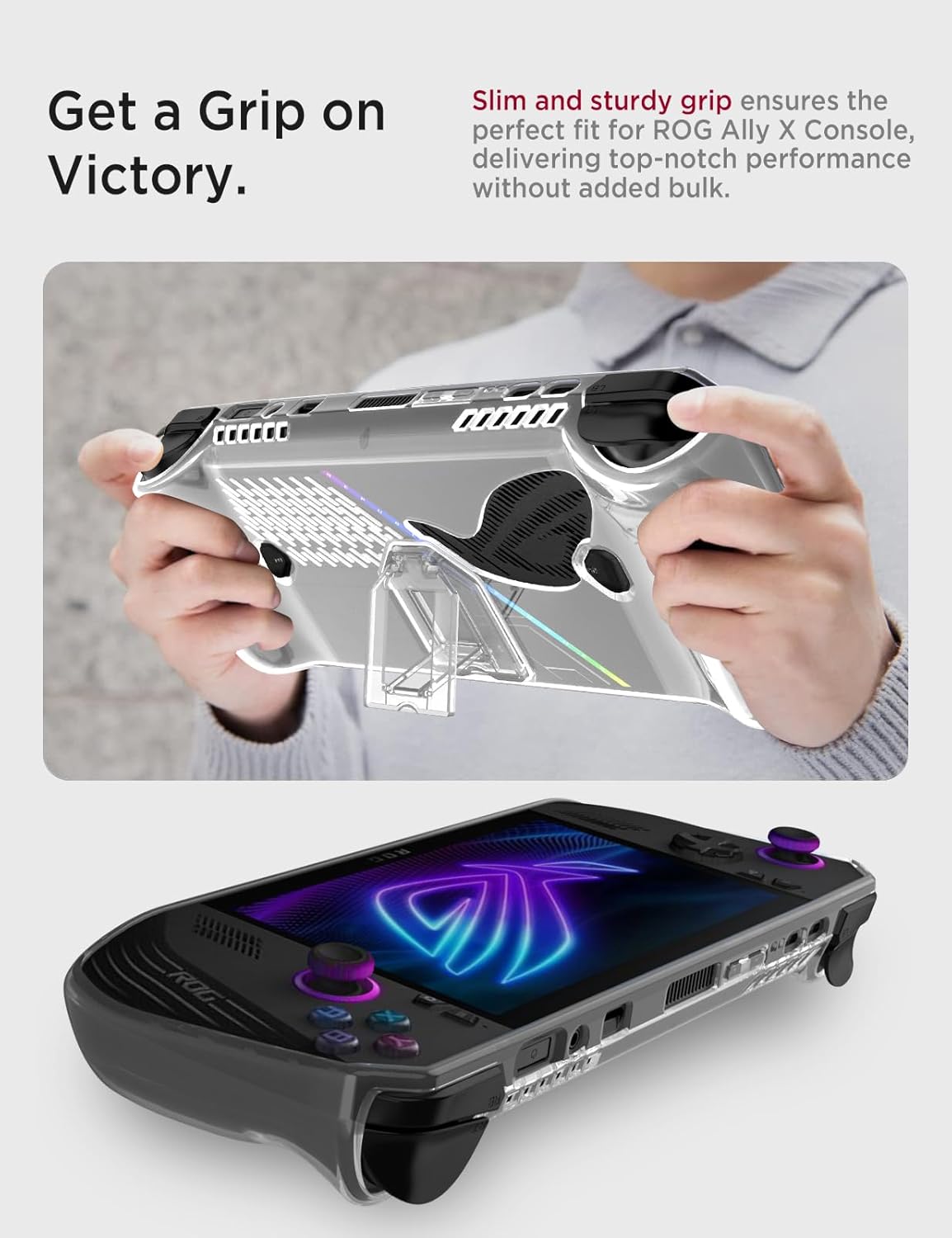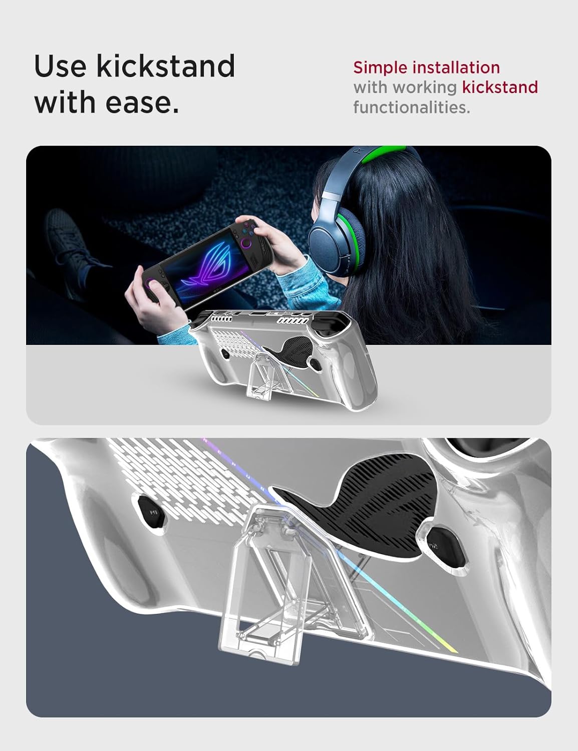 [Clear Design with Stand] The rog ally x slim case design allows you to easily appreciate the exquisite design and colors of the game console, highlighting your personality. The ally x case bracket adopts a set of stele technology, and the rog ally x silicone cover is stable and does not fall off, making asus rog ally x case more convenient to play with