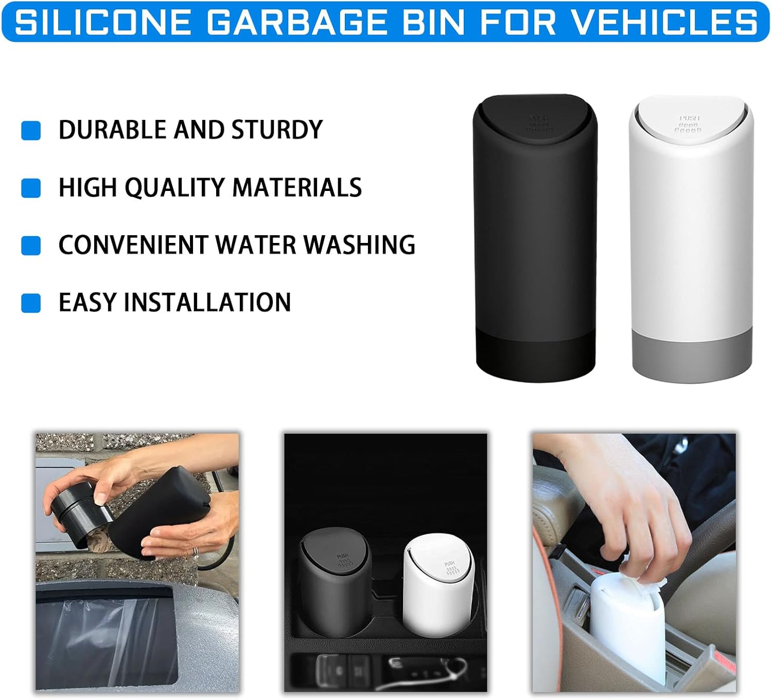 【Environmentally friendly material】The bottom of our car mini trash can cup is made of environmentally friendly plastic, and the cup body is made of silicone. The temperature resistance of silicone is -40℃-240℃, so you can also use the trash can as an ashtray. Waterproof, durable and easy to clean, very convenient.