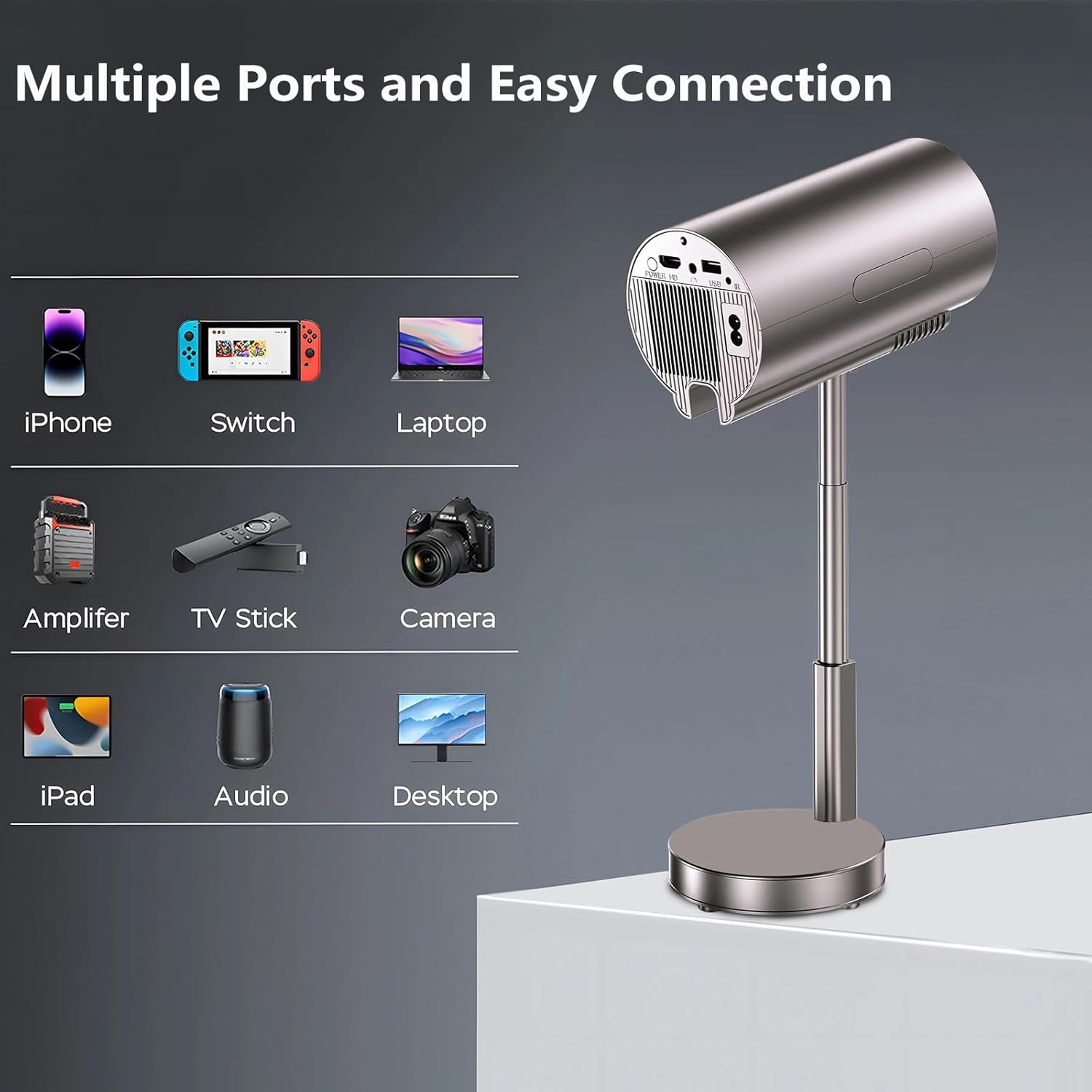 【Creative Built-in Foldaway Stand Design】:You do not need to purchase additional projector stand. This Smart projector is equipped with a foldable aluminum alloy bracket, which is very sturdy and durable. Meanwhile, its maximum height can reach 15 inches, and you can choose the appropriate height according to the position you want to project. Whether at home or outdoors, it is your best choice.