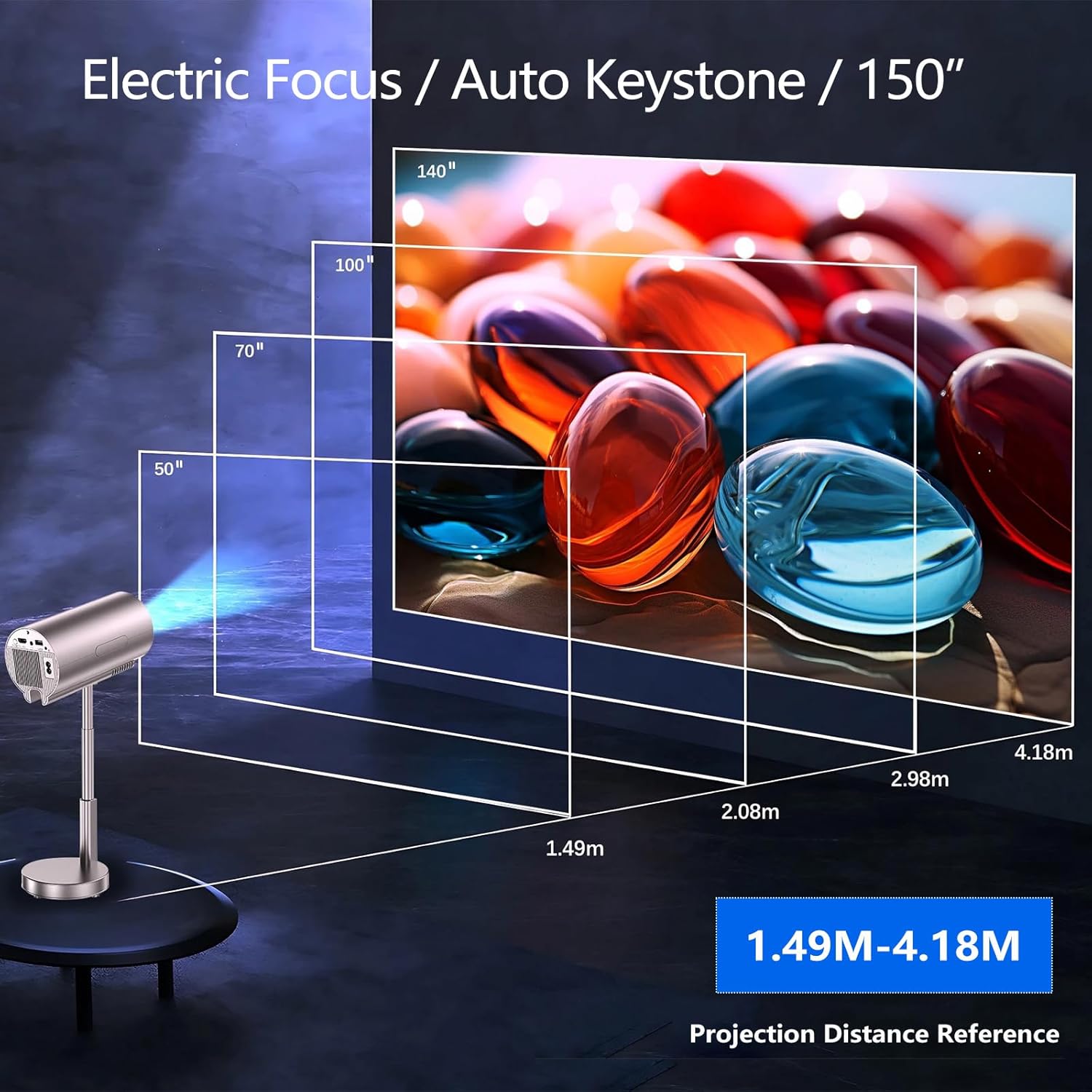 500 ANSI, 150″ Screen, BT 5.2, Electric Focus,Auto Keystone