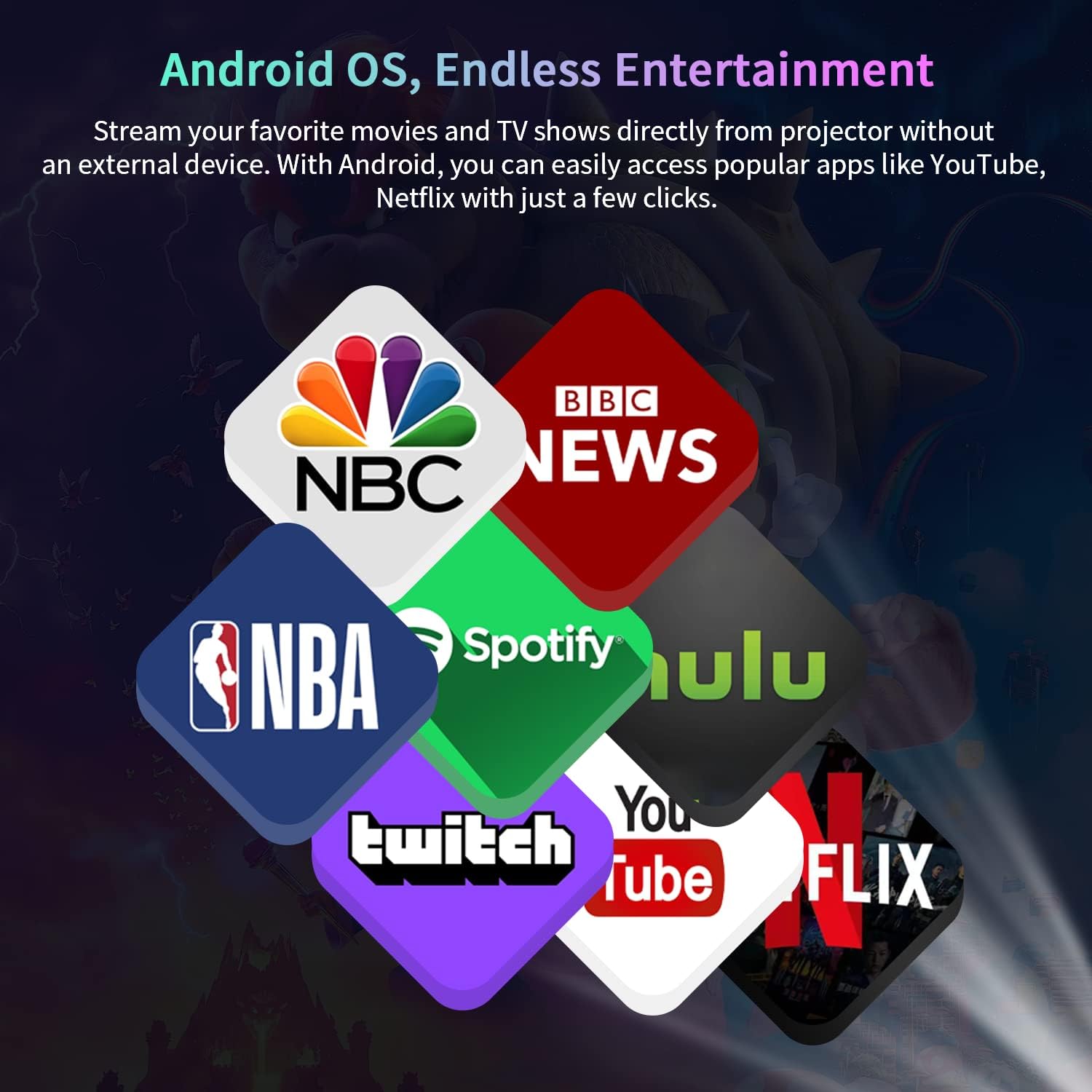 Built in more steble android OS, compatible with apps, allow you to browse the internet and stream without a cable box projectorprojector Powerful Surround Sound