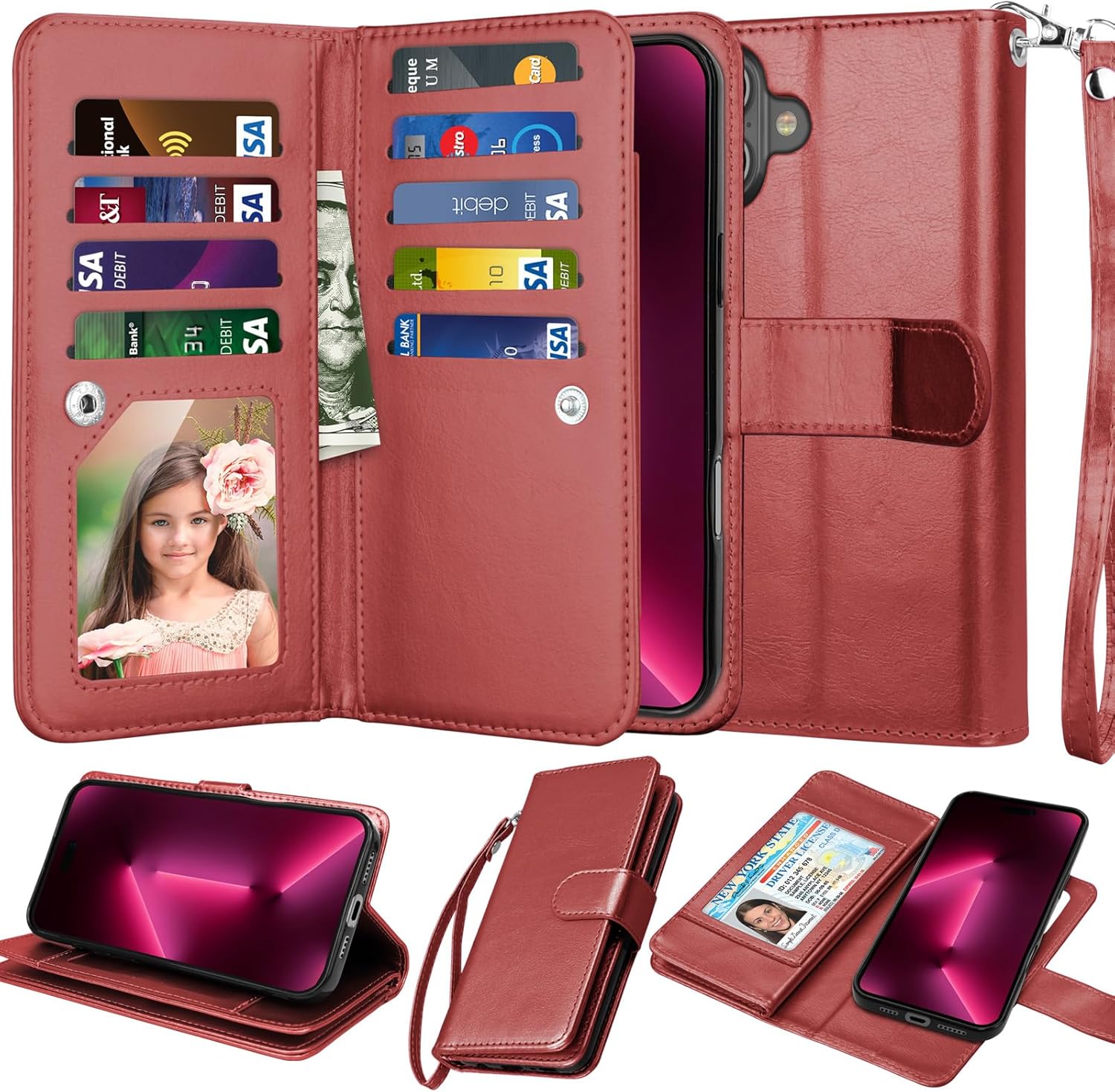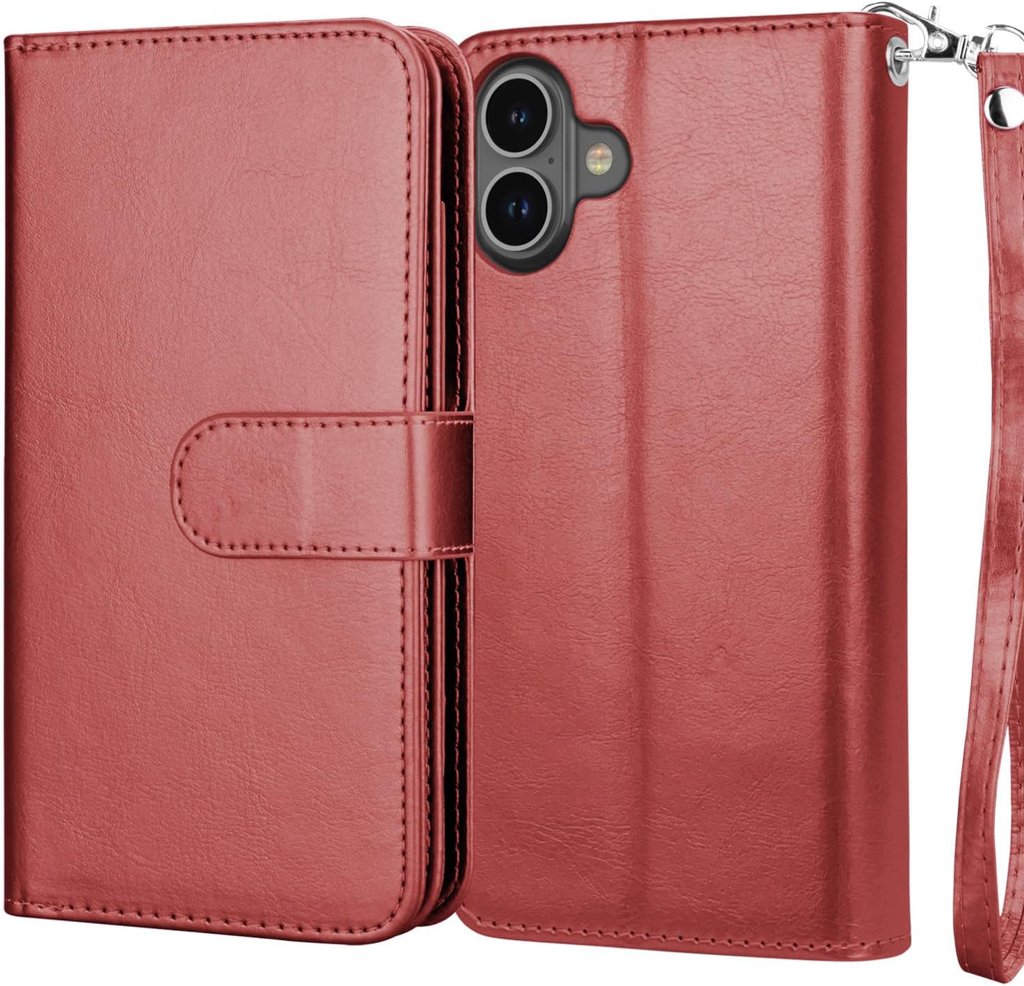 -1 x Njjex 9 card slots Leather wallet case for iPhone 16 Plus