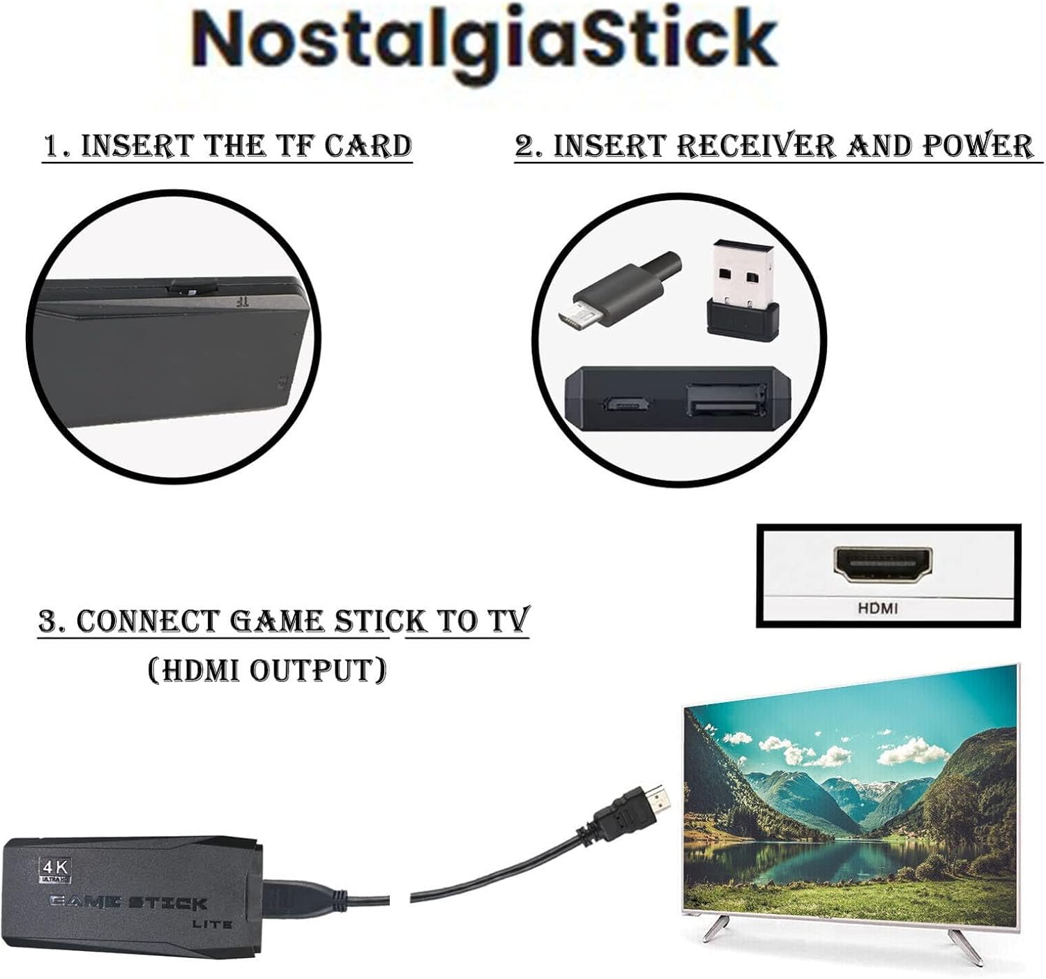 【Plug and Play Video Games】- The NostalgiaStick Console is designed to offer a seamless gaming experience. Simply connect it to your TV via HDMI, and you can dive into over 20,000 built-in games instantly. No hassle of downloading or installing anything, just plug and play!