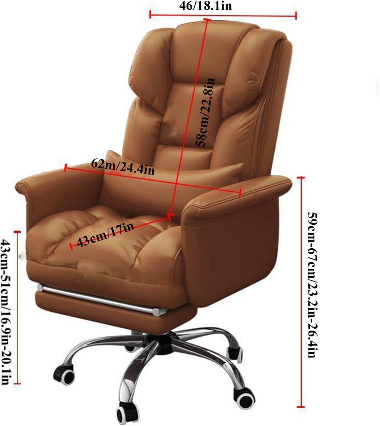 【Premium Quality】Our leather executive office chair is made of high-quality PU leather, ensuring durability without compromising the luxurious soft touch. Heavy-duty metal base and armrests add extra assurance. Thick high-density latex padding provides comfortable seating that makes you feel as if you are sinking into a cloud.