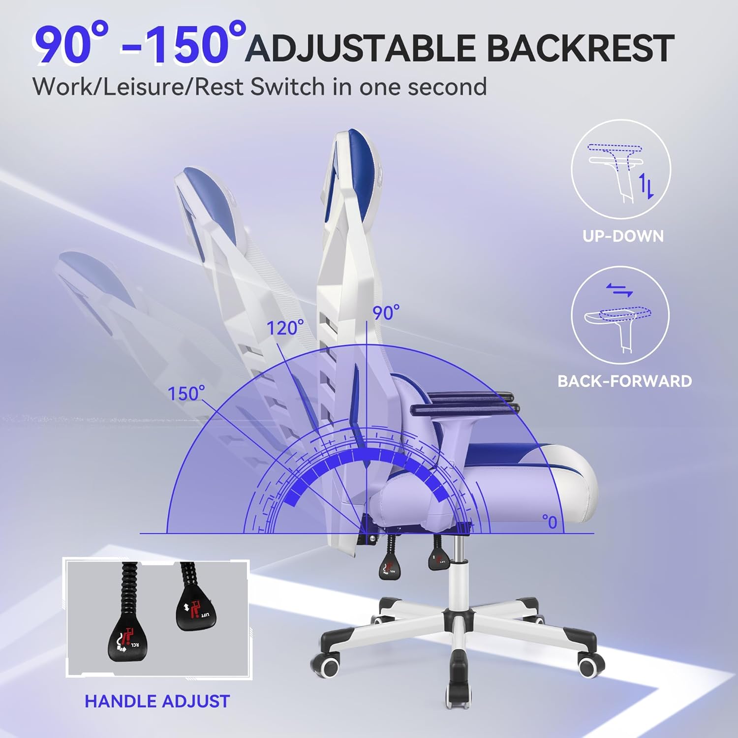 OneGame Video Gaming Chair, Breathable Computer Racing Style Swivel Chair Adjustable Backrest Ergonomic PC with Lumbar Support, Whiteblue