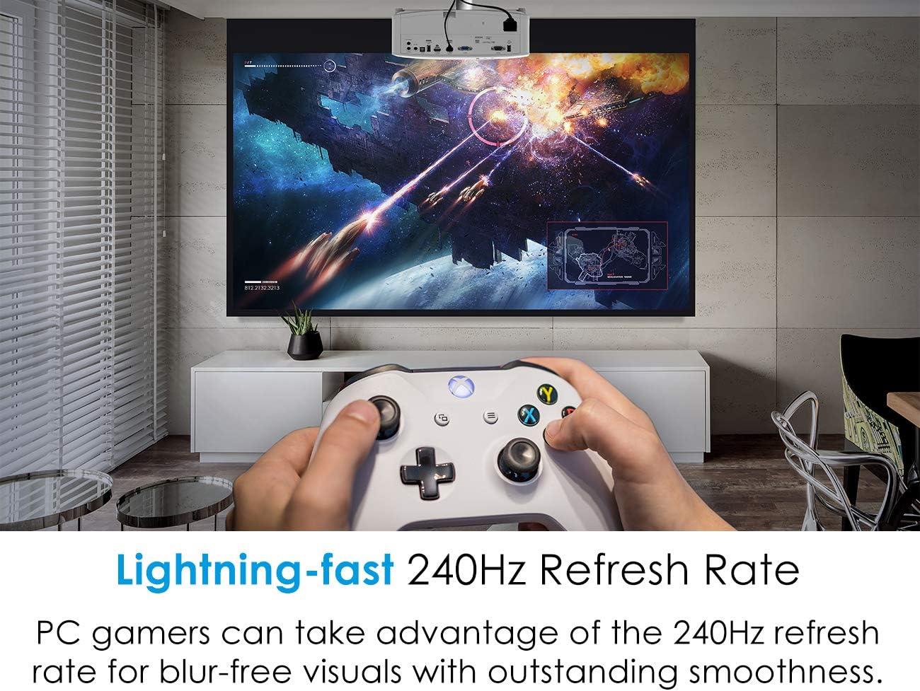 LAG-FREE GAMING: Introducing the ultra-fast 240Hz gaming projector enabling blur-free visuals and unparalelled smoothness––combined with Enhanced Gaming Mode to produce a 16ms response time, or 26ms at 4K UHD for the lowest input lag on a 4K projector