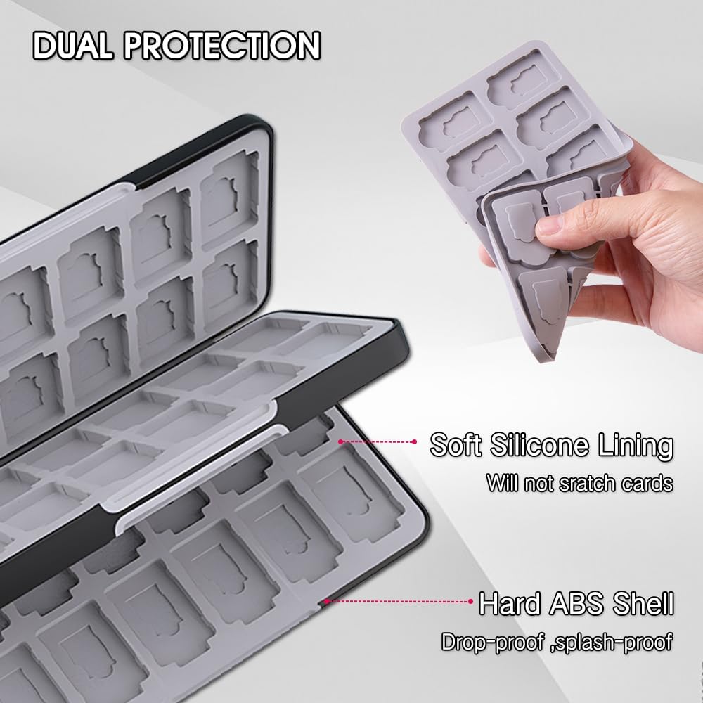💗【Full Protection】 The outer hard shell is made of high-quality ABS material, which is waterproof, dustproof, shockproof, scratch-proof, sturdy and durable, effectively protecting the Switch game card from impact and falling. The interior cushion protector is made of soft silicon lining material, precise card position, ensure the Switch game cards stay at place without slipping.