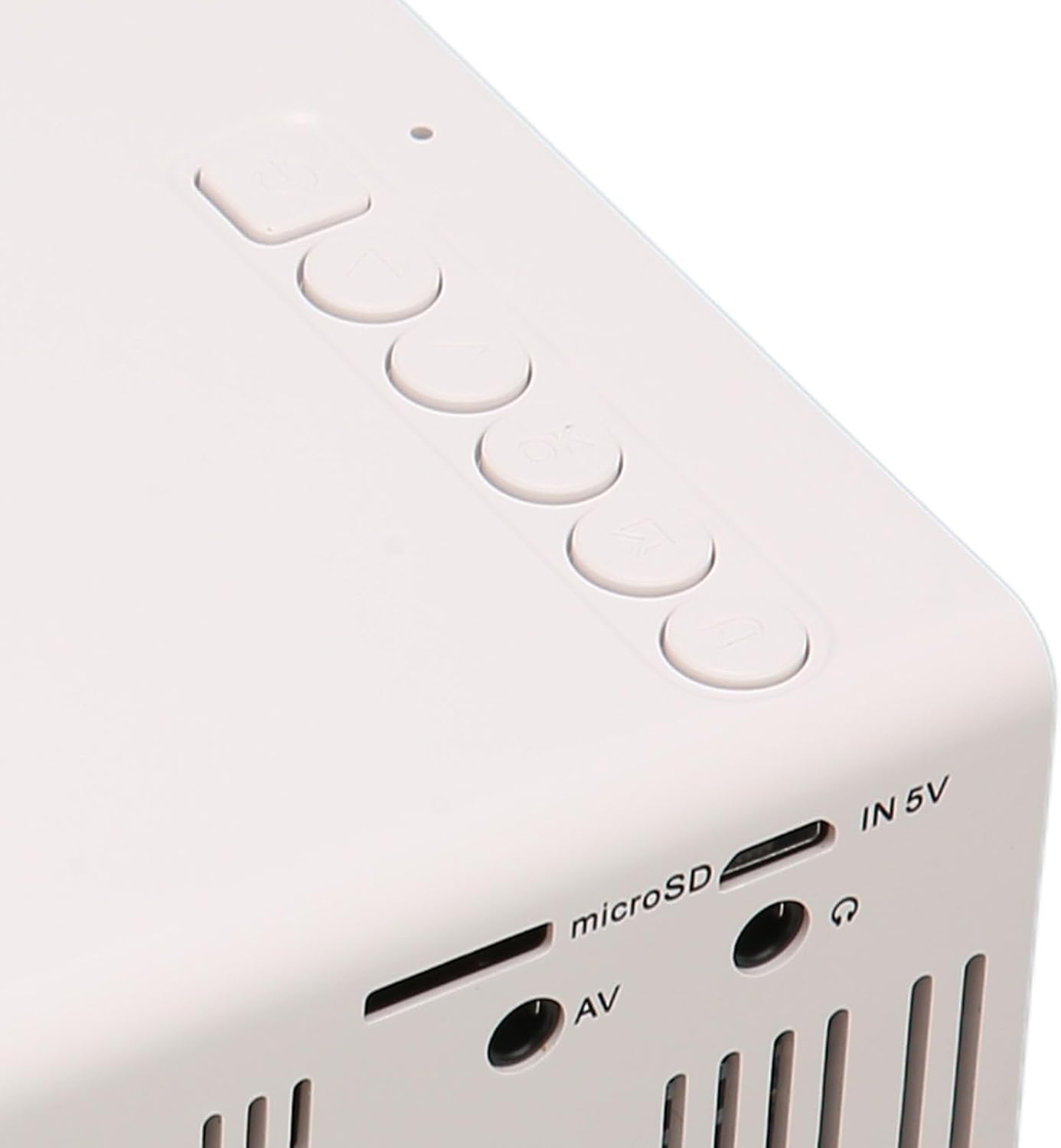 Item Type: Mini ProjectorMaterial: ABSPlug Voltage: 100‑240VProjection Light Source Life: 30000 HBrightness: 200 ANSI LmResolution: 320x240Contrast Ratio: 800: 1Projection Ratio: 1.6: 1Support Resolution: 1920x1080Projection Distance: 1.5‑2.0m/4.9-6.6ftProjection Aspect Ratio: 4: 3Remote Control Battery: 2 x AAA Batteries (not Included)Memory Card: Support Up to 32G (not Included)Size: Approx. 12×8.5×4.6cm / 4.7×3.3×1.8in