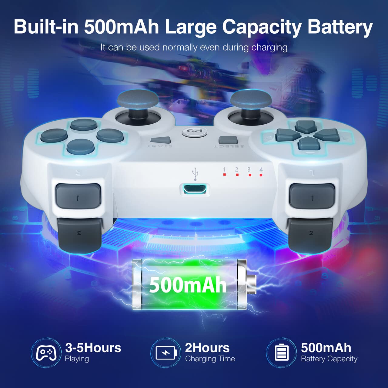 【Designed for Play-Station 3】 – High performance PS-3 Wireless Bluetooth controller. Easy connection and easy play. The game controller supports extended PS-3 games. To use it on a PC, a USB cable is required (included). Best present for boys girls, Christmas Thanksgiving Day.