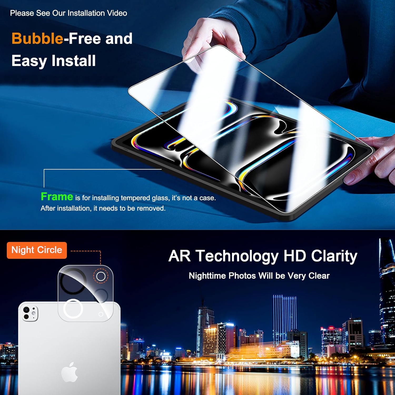 ✅ 【Applicable Models】: The QHOHQ 2-pack tempered glass screen protector and 2-pack camera lens protector are specifically designed for the iPad Pro 13 Inch M4 2024 7th Generation and are not applicable with any other models. Please carefully confirm your iPad model before purchase. The product comes with an installation frame for easy installation without leaving any bubbles. Please watch our installation tutorial before installing.