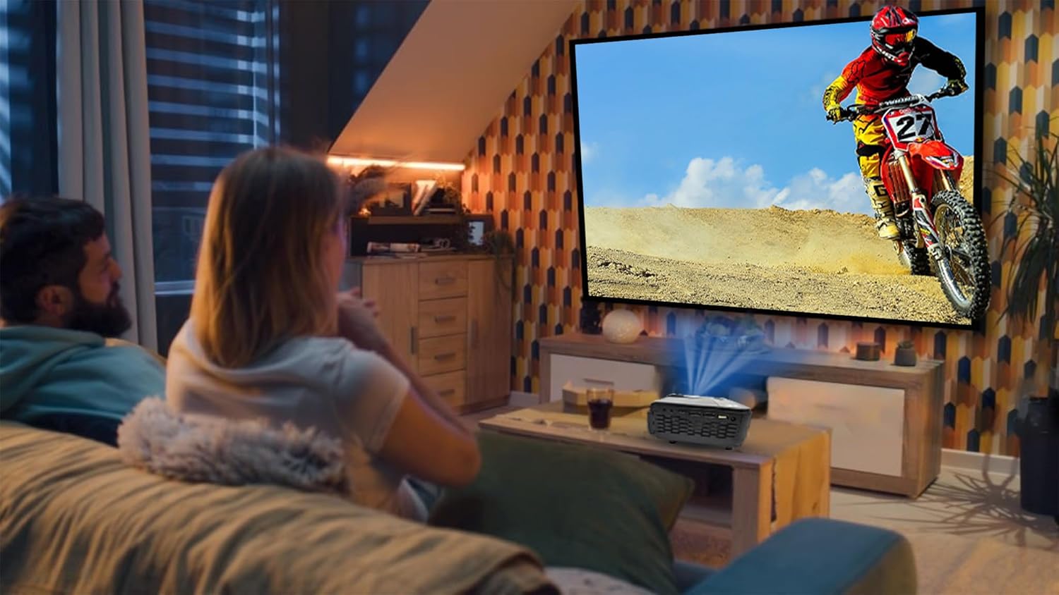 FLEXIBLE PICTURE SIZE PROJECTION – With a 3.97 Inch LCD projection, our indoor/outdoor projector offers the flexibility to project striking visuals that span from 30 inches to 150 inches on almost any flat surface, whether it’s a wall, ceiling, screen, or even the side of your house. The recommended picture size falls within the range of 37 inches to 100 inches.