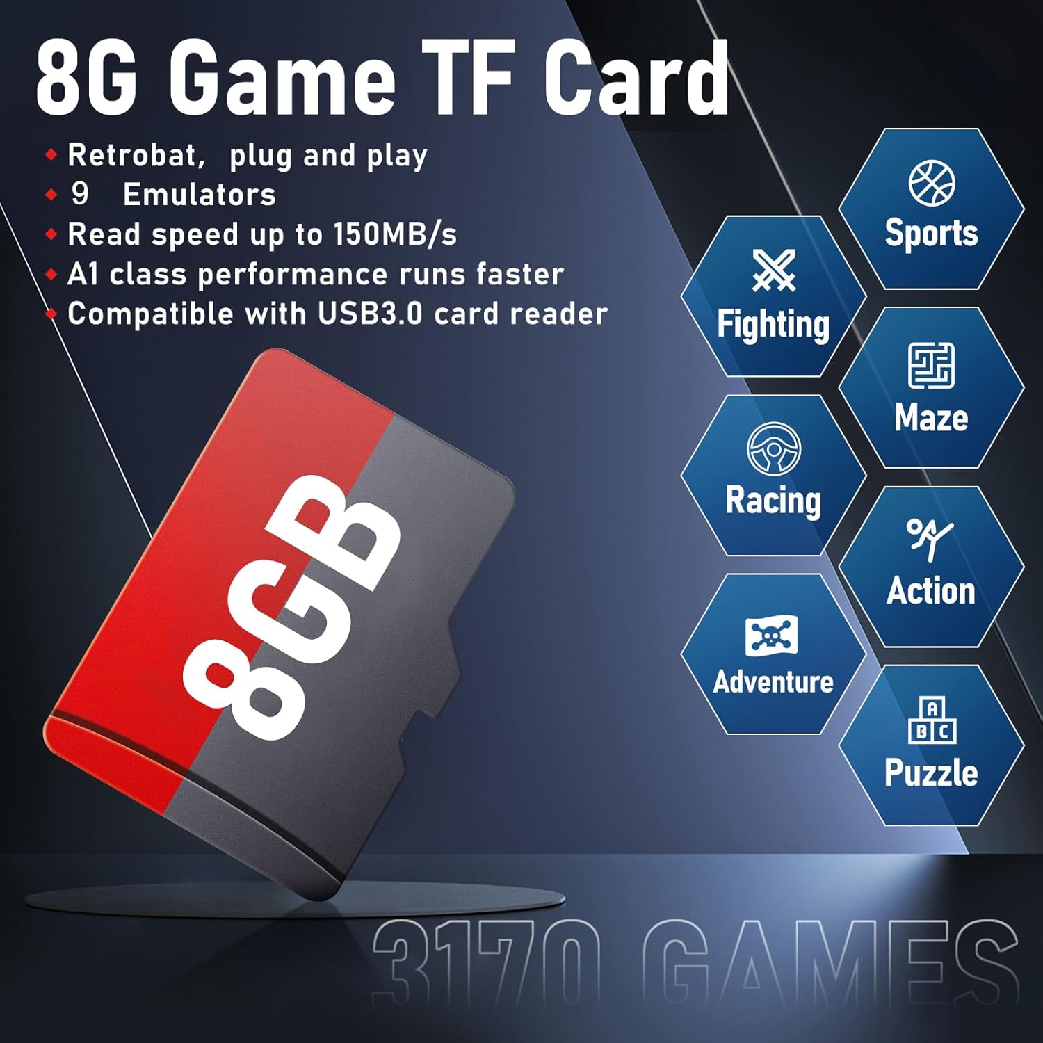 Ultimate Gaming Experience in 1 Card: Immerse yourself in a world of nostalgia with our retro game card, featuring 9 emulators and 3170 video games. Play your favorites without the hassle of switching game consoles