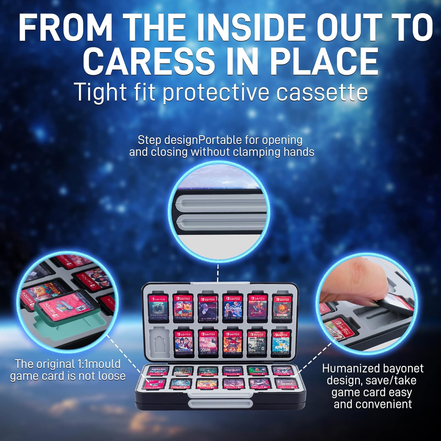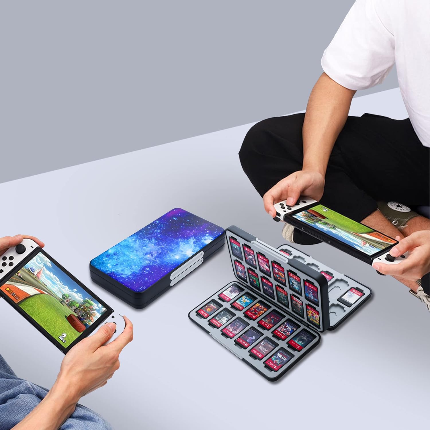 LARGE CAPACITY: Starry Sky themed design card case provides 48 storage slots for your switch games, keeping your game saves organized and without losing any of the fun.