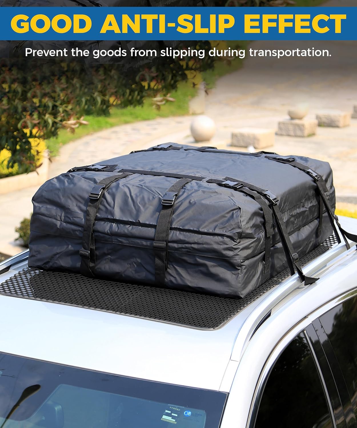 [Anti-Slip Design] Reinforced protective pads are used under the roof rack to help prevent cargo from sliding during transportation, so your luggage and cargo transport will not slide or move when you need it.