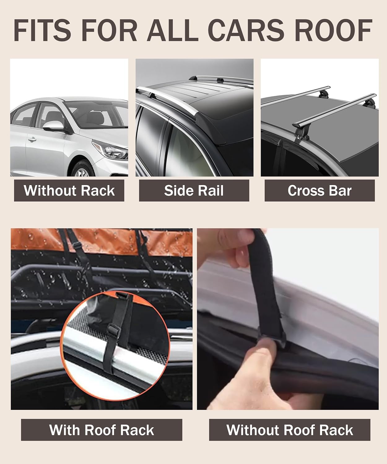 [Easy to install] Our roof luggage rack is equipped with anti slip pads and 8 thick adjustable straps to secure the luggage bags in place. Smooth zippers, adjustable straps, door hooks, and sturdy buckles allow you to effortlessly secure it to any car.