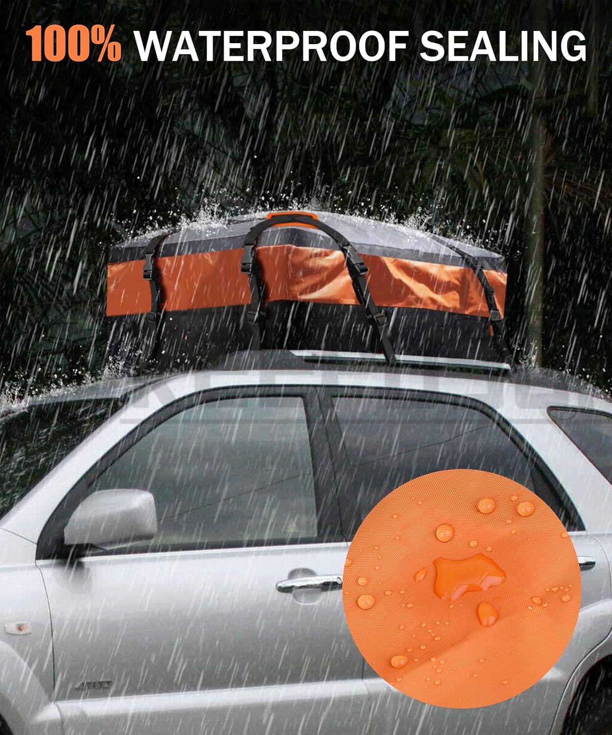 [Package Includes] You will receive 1 roof luggage bag, 1 storage bag, 1 anti slip mat, 4 door hooks, and 1 luggage lock.