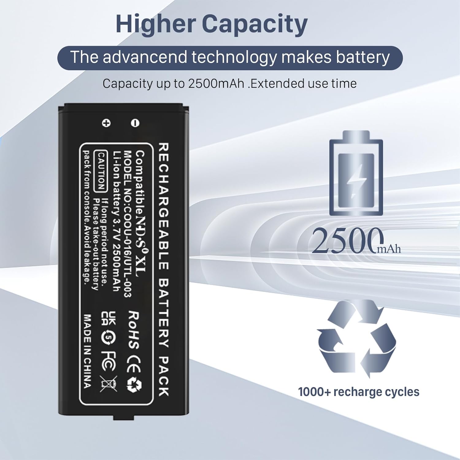 🎮Upgrade Battery Replacement: (Long Lasting/0 cycle) 100% New High quality updated battery forNintendo DS XL, DSi LL, DSi XL, UTL-001, Part No. C/UTL-A-BP UTL-003 is made of world-class Lithium polymer battery cell, the advanced technology makes our battery capacity up to 2500mAh with the same size. Our battery will provide you over 800 charging cycles with high-speed and efficient charging.
