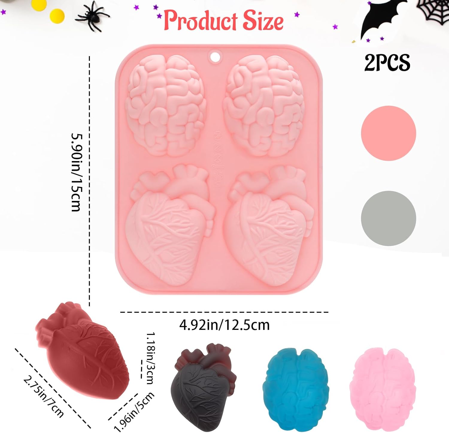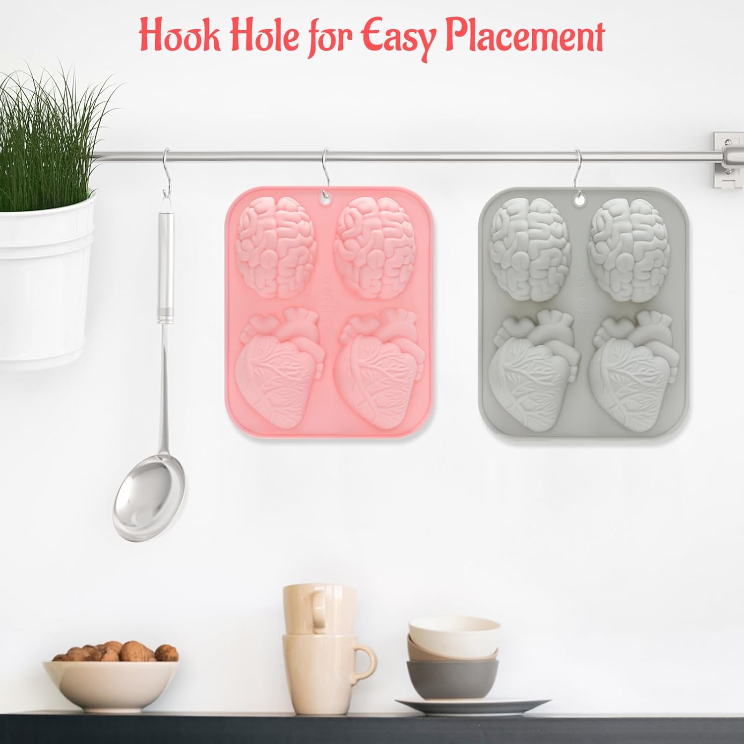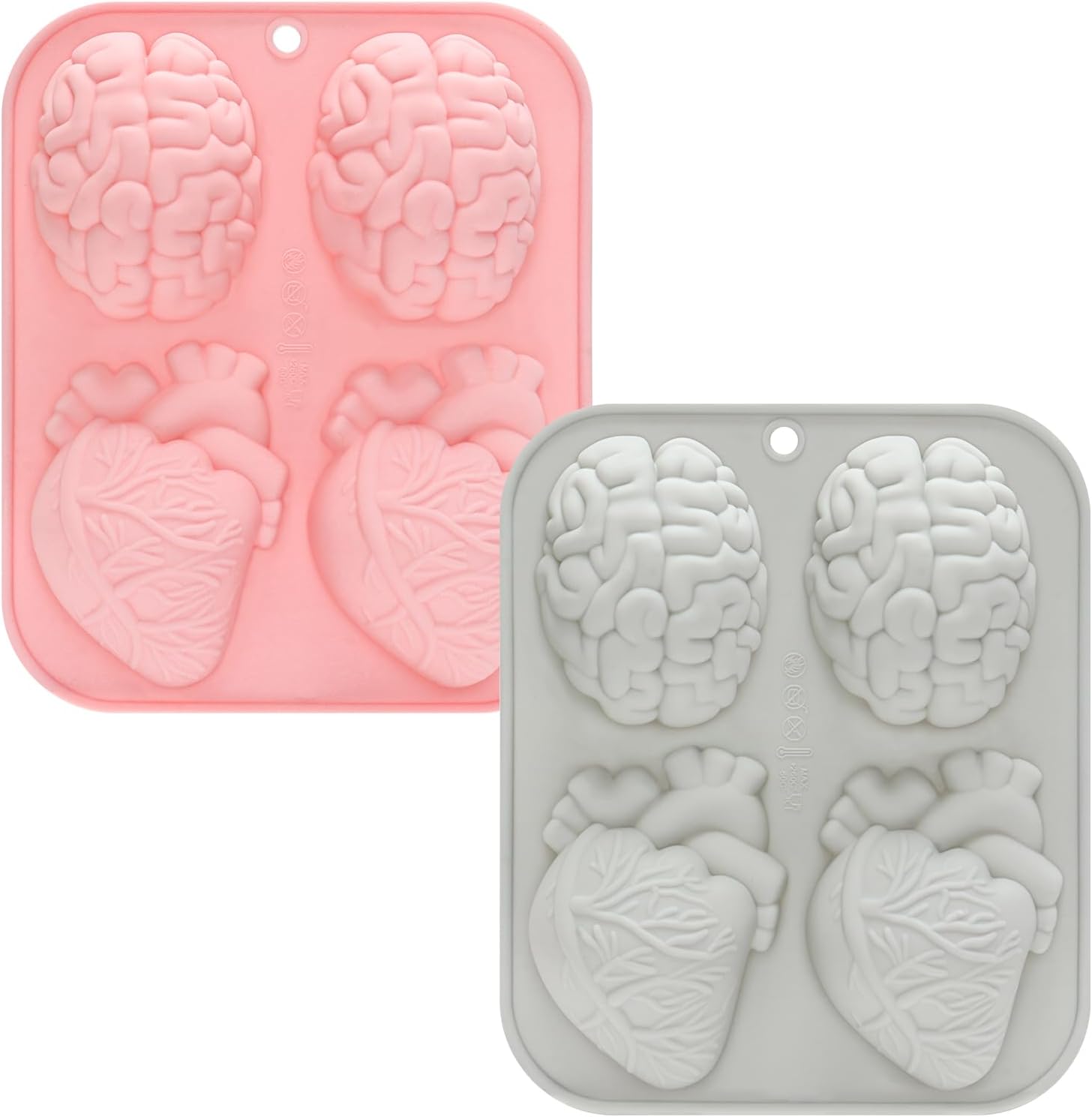 Silicone Halloween Mold: Each package includes two Halloween molds, which are perfect for Halloween or any pirate-themed occasions. These 4-cavity molds allow you to create creepy but delicious treats. Imagine the delight on your guests’ faces as they bite into a gory human heart or brain-shaped dessert or sip their drinks with skull or tombstone ice cubes