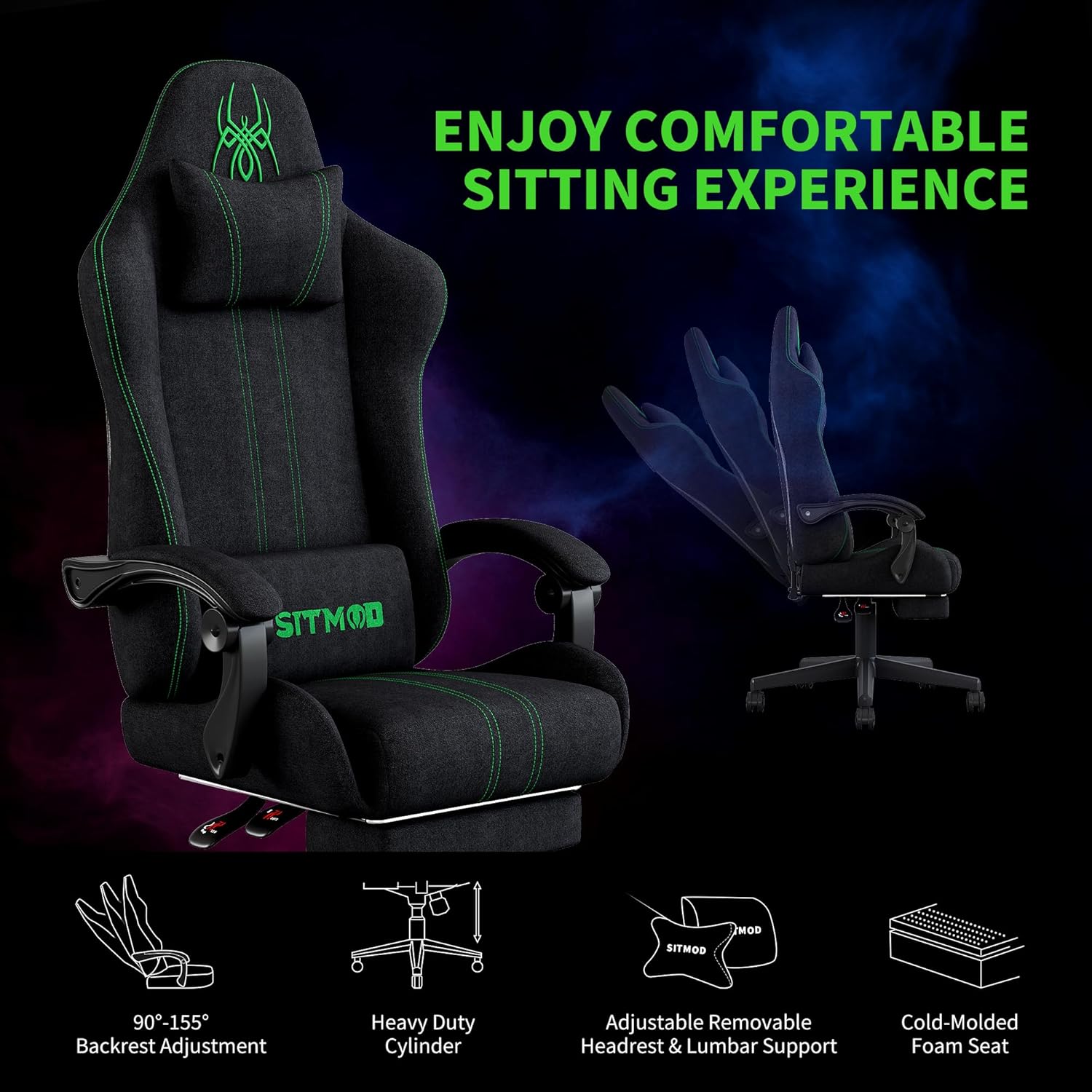 150-Degree Reclining Gaming Chair: Relax in style with our reclining gaming chair, which features an adjustable backrest that reclines up to 150 degrees. Whether you’re taking a break from your gaming desk chair or adjusting your position during work, this feature ensures you can find the perfect angle for any activity