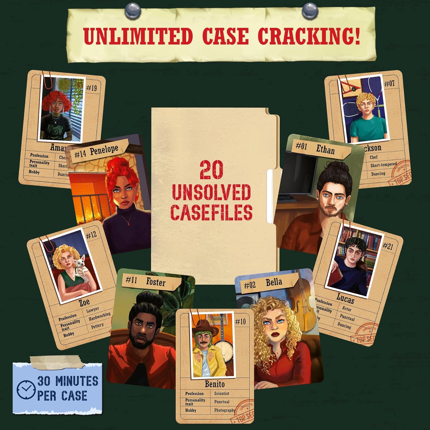 NUMBER OF PLAYERS AND AVERAGE PLAYTIME: Designed for 2 to 5 players, this strategic card game is suitable for ages 10 and up. Each case offers approximately 30 minutes of thrilling gameplay until the very last clue.