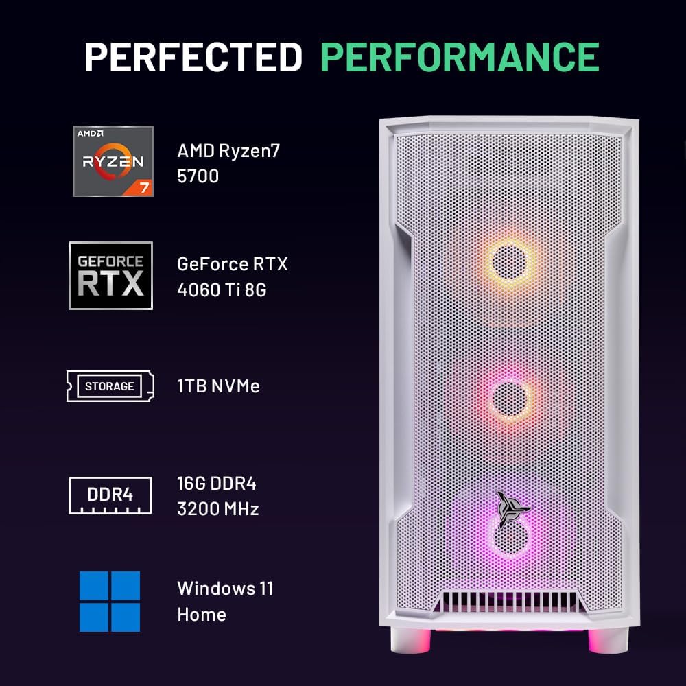 AMD Ryzen 7 5700 3.7GHz (4.6GHz Turbo Boost) CPU Processor | 1TB NVMe M.2 SSD – Up to 30x Faster Than Traditional HDD | High-Performance Air Cooler