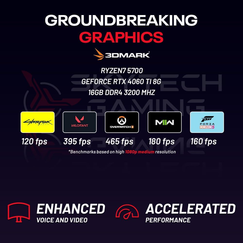 The Skytech Blaze4 Mini offers the best gaming computer built up to date to quickly run popular games such as Call of Duty Warzone, Fortnite, Escape from Tarkov, Grand Theft Auto V, Valorant, World of Warcraft, League of Legends, Apex Legends, Roblox, PLAYERUNKNOWN’s Battlegrounds, Overwatch 2, Counter-Strike 2, Battlefield V, New World, Minecraft, Elden Ring, Rocket League, Baldur’s Gate 3, Dota 2, HELLDIVERS 2, Monster Hunter, Terraria, Rainbow Six Siege, Dragon’s Dogma 2, and more at Ultra settings, detailed 1080p Full HD resolution, and smooth 60+ FPS gameplay.