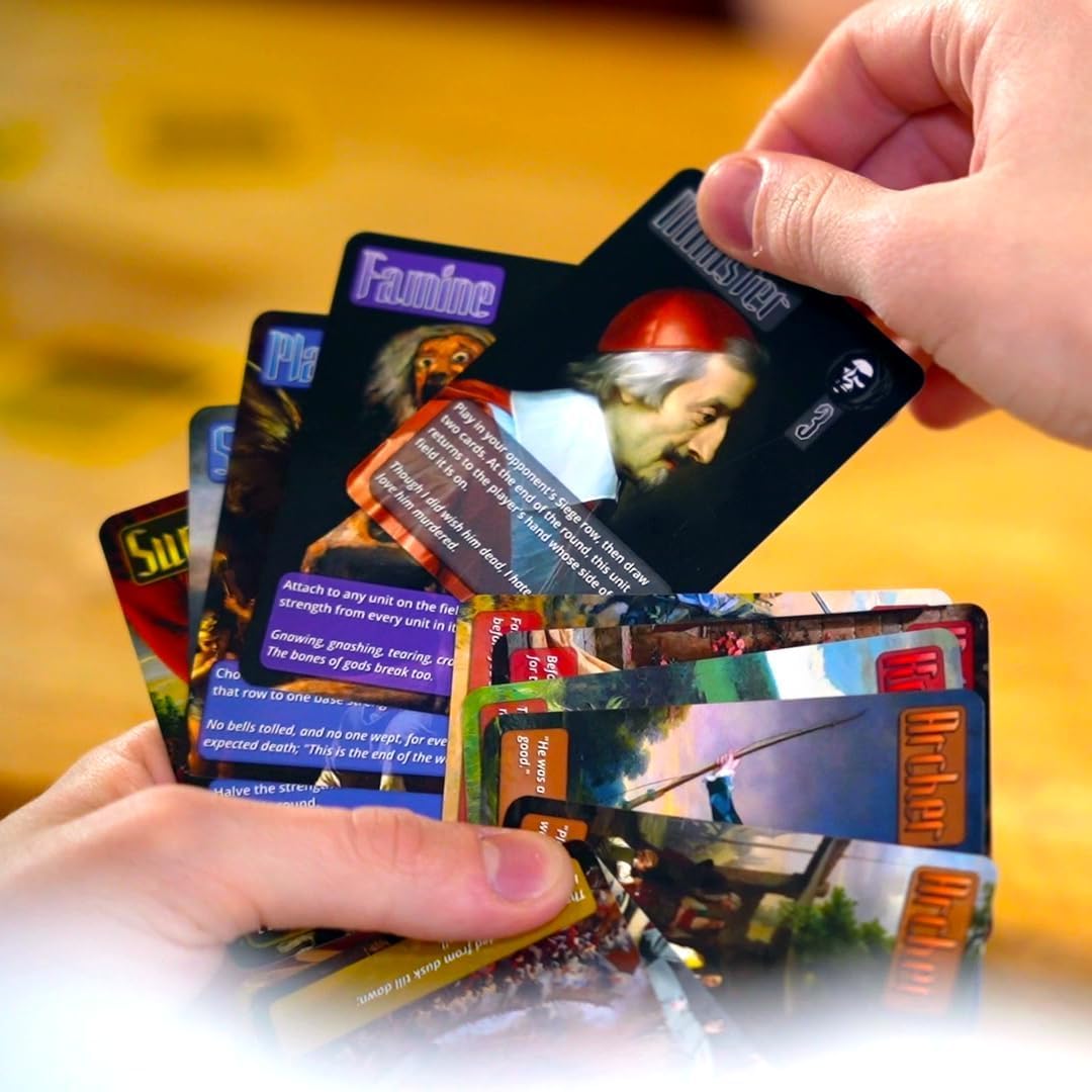 STRATEGY GAME: Dozens of unique card effects combine for creative tactics. Deception and trickery are encouraged! Adapt your strategy by modifying your hand at the beginning of the game. The first player to win 2 of 3 rounds wins the game!