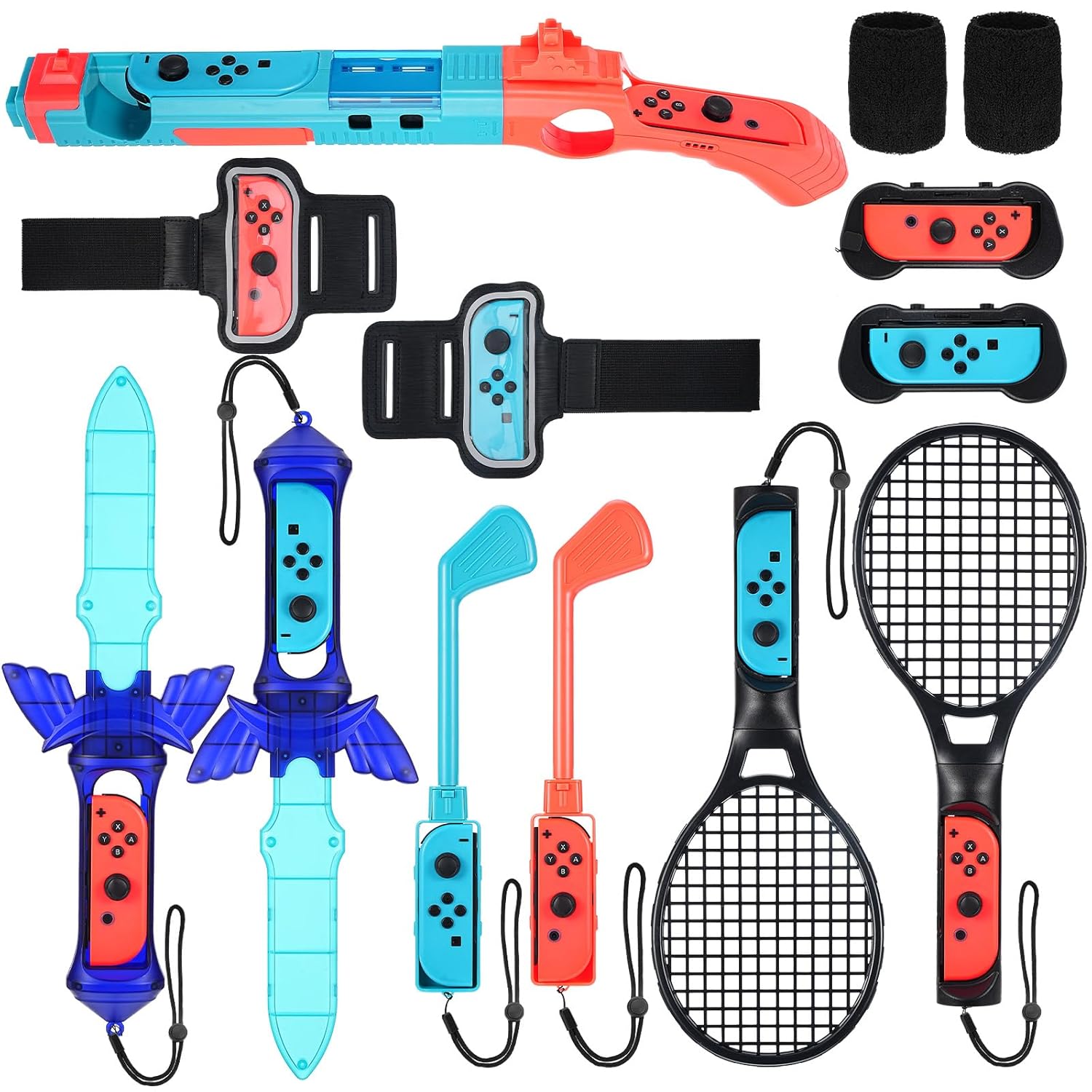 【14 in 1 Sports Accessories Bundle】This switch sports accessories bundle comes with 14 in 1 sports accessories, covering most scenes of NS game sports. The comfortable grip accessory allows you to hold both hands horizontally, easy to attach and detach, can be held vertically with one hand to play games, and SL and SR buttons can be pressed easily.The product is easy to use and suitable for users of all ages.ABS plastic material is sturdy and durable. This product is easy to use and suitable for