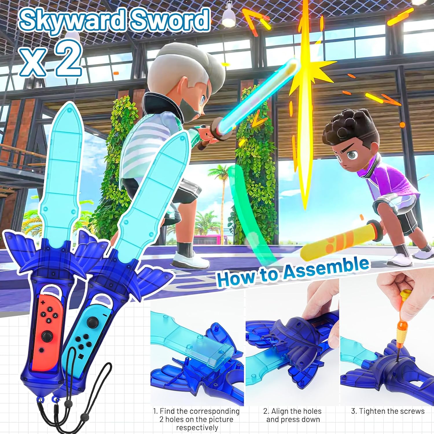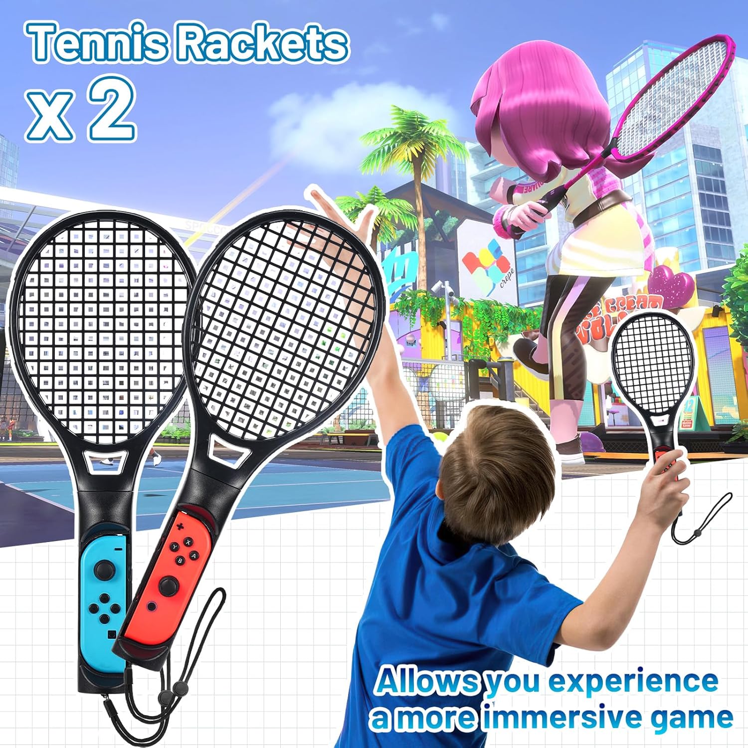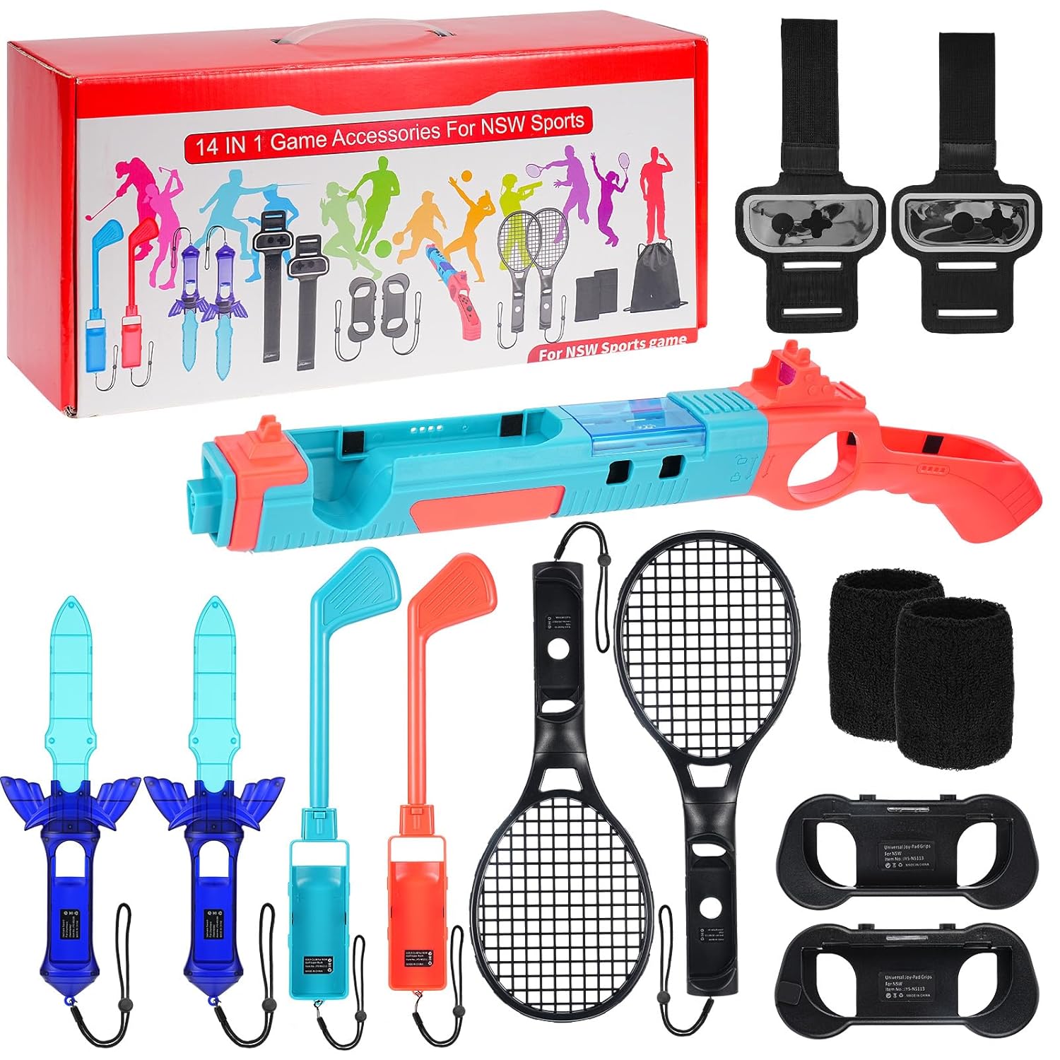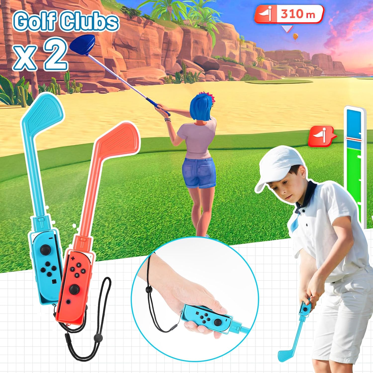 【You will get】 Included golf clubs*2,small hand grips*2,leg straps*1,wrist straps*1,tennis rackets*2,mini swords*2,wrist guards*2,NS game gun*1, storage bag*1, user manual, 30 days no reason return and friendly customer service, and a pleasant nintendo switch sports accessories shopping experience.